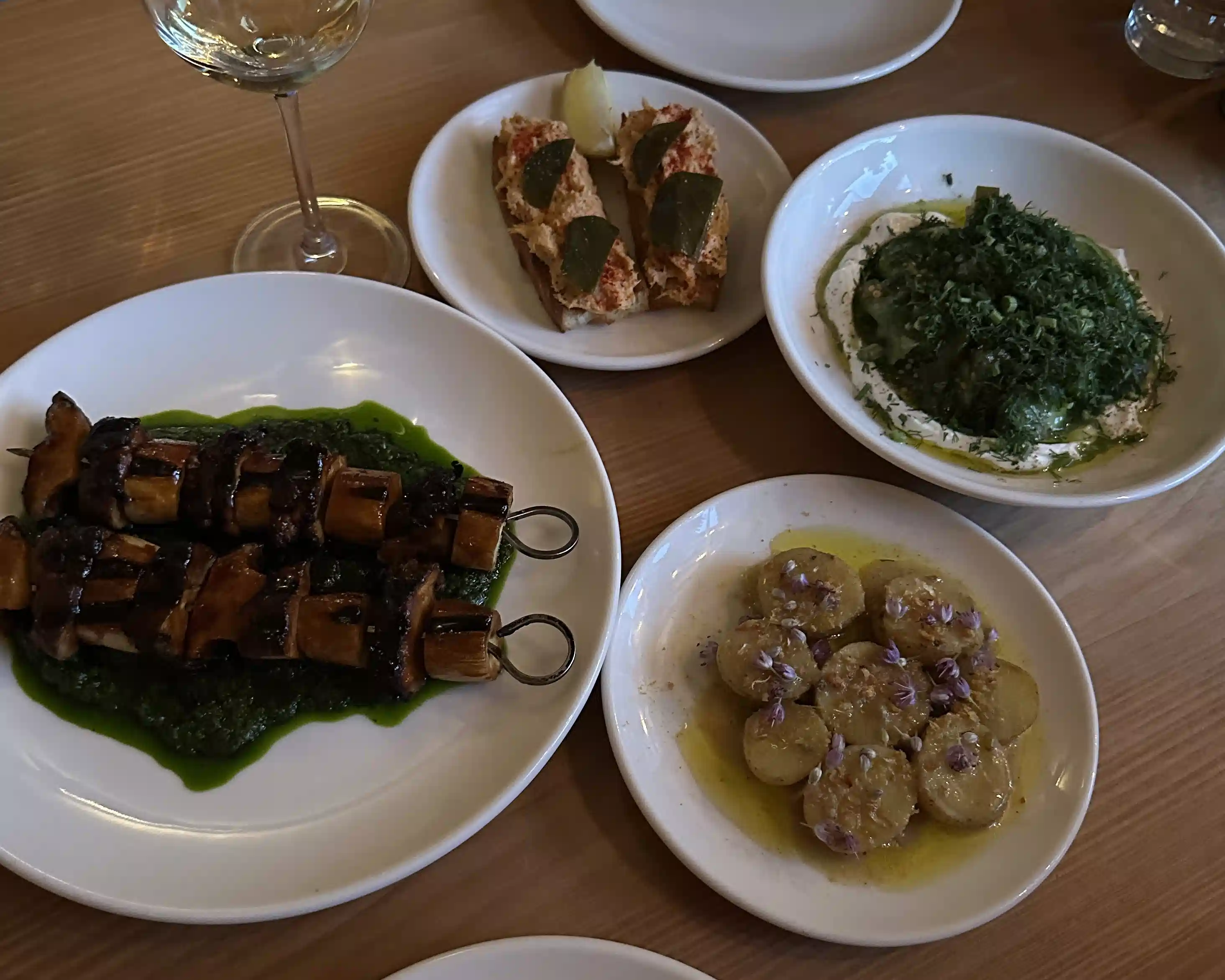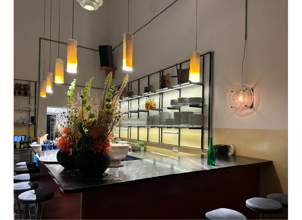 最後の晩餐として選んだのは、中心地から少し離れた住宅街に位置するNørrebro(ノアブロ)地区にある、地元の人々からも愛されるビストロ「Cleo(クレオ)」。コンクリートと木の温もりが調和した内装は、まさにコペンハーゲンらしいセンスが光る空間!上品でありながら気取らない雰囲気のなかで、素敵なディナーを楽しめました。