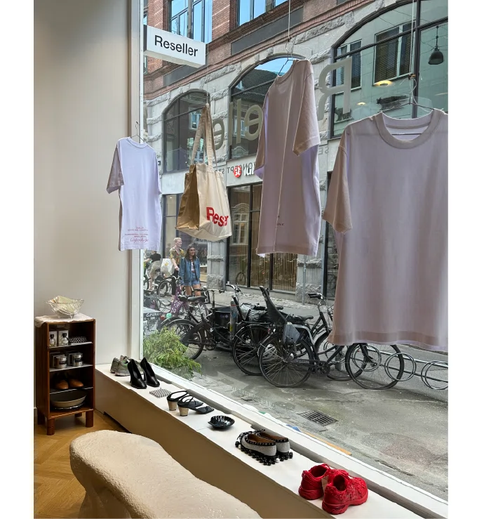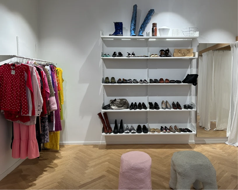 まず訪れたのは、委託販売を行うセカンドハンド&コンセプトストア「Reseller(リセラー)」。デザイナーズアイテムを中心にセンス良くセレクトされたラインナップで、商品の買い付けや販売に加え、Instagramを通じたオンライン販売も行っています。店内はまるでセレクトショップのように洗練されていて、セカンドハンドであることを忘れてしまうほど。サステナブルな文化が根付くコペンハーゲンならではの空気感を味わいながら、掘り出し物を見つける楽しさが広がります。