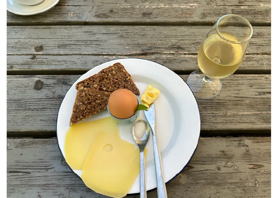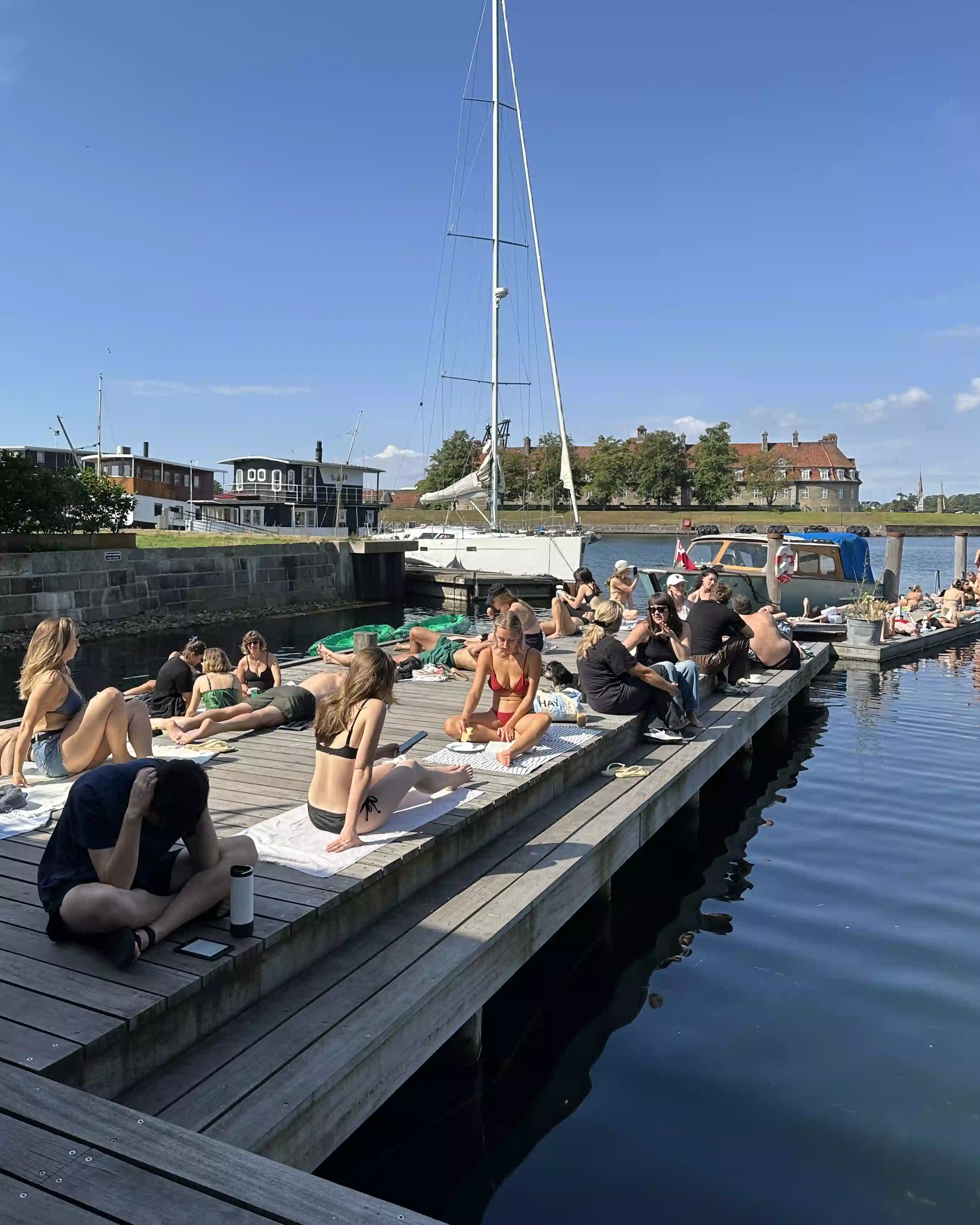 まずは朝ごはんを食べに、定番観光スポットのひとつ「La Banchina(ラ バンキーナ)」へ。Instagramで見かけて気になっていた場所で、港町コペンハーゲンらしくサウナ付きのカフェというユニークなスタイル。海辺では水浴を楽しむ人たちの姿も見られ、自然に囲まれながらゆったりと過ごせるスポットです。肩肘張らずに気軽にリラックスできる空気感は、まるで田舎の港町に遊びに来たような感覚に。中心地からは自転車で15分ほどで行けます。