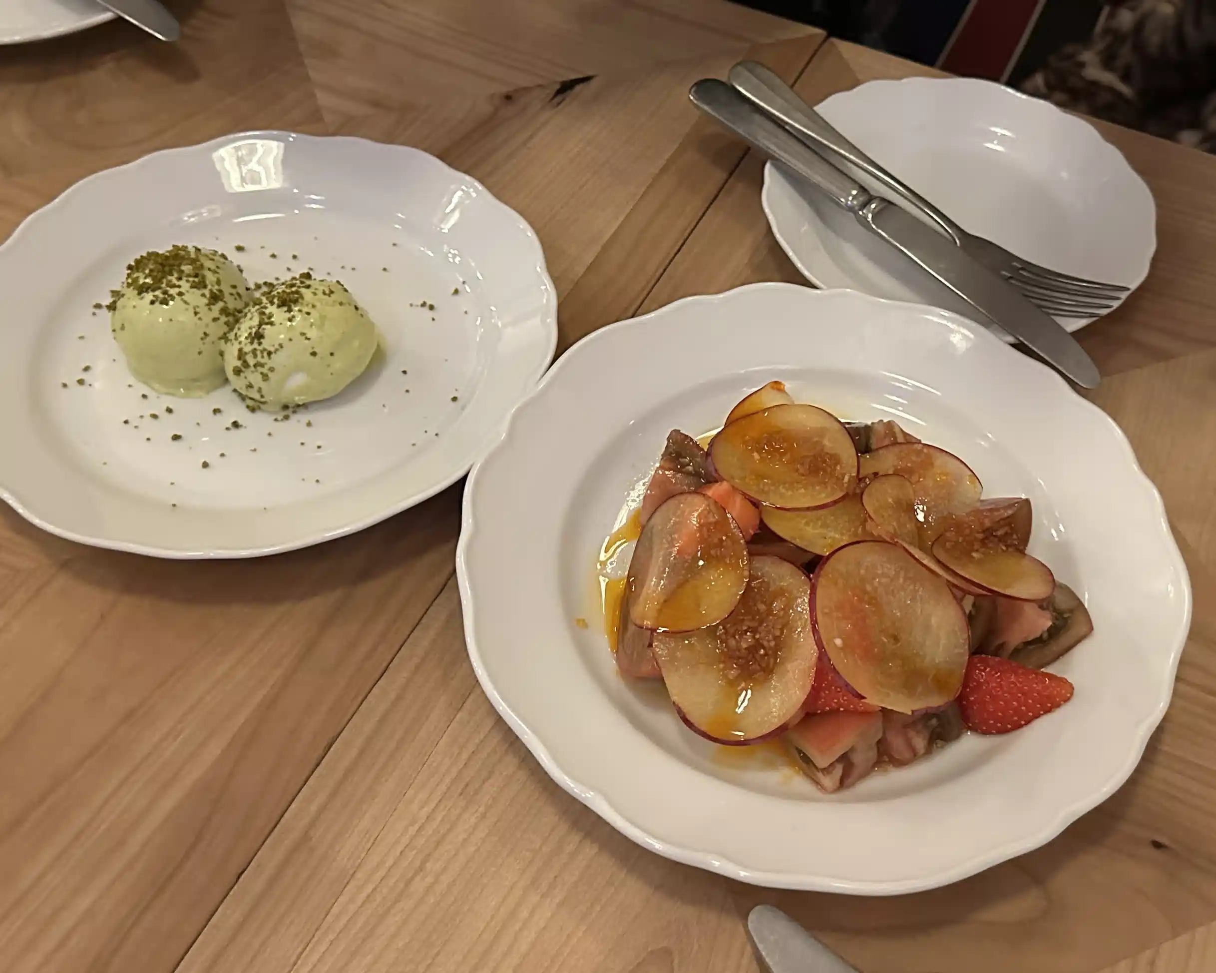 ショーの後は高まった気持ちのまま、念願の「Apollo Bar(アポロバー)」でディナーを。Charlottenborg(シャーロッテンボー)の中庭に建つ歴史的な美術館の中にあり、まるで隠れ家のような特別な雰囲気でした。店内は高い天井と大きな窓、クラシックな彫刻が並ぶ空間で、ミニマルながらも存在感のあるインテリアが印象的。連日のショーの感想を語り合いながら、楽しい時間を過ごしました♡午前中から夜まで営業しているので、次回はディナー以外の時間にも訪れてみたいです!