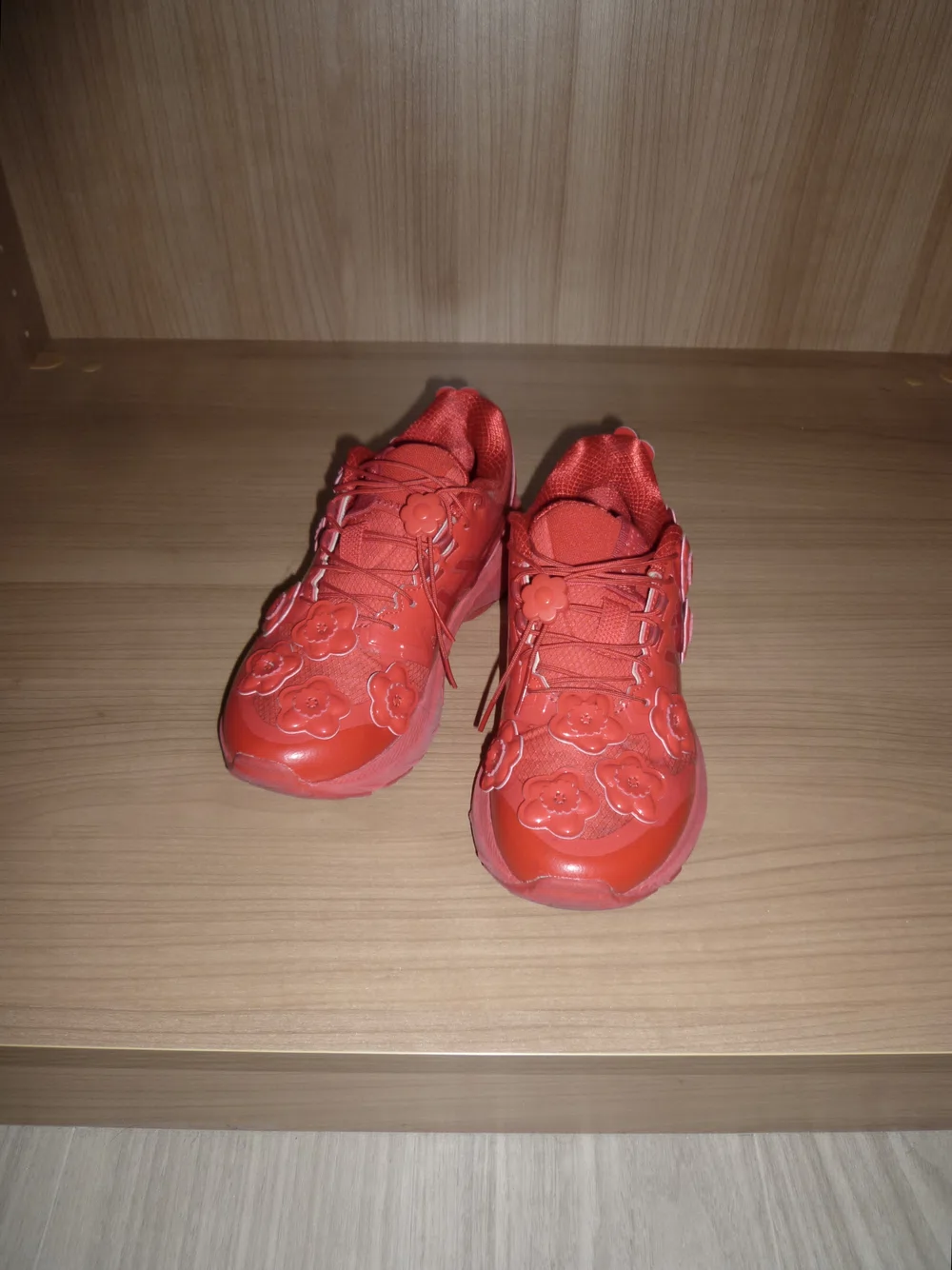 「約半年前、Dover Street Market Ginzaで念願のスニーカーを手に入れました。情報解禁と同時に心を奪われ、抽選にも応募しましたが、残念ながら落選。しかし、足のサイズが小さいおかげで、店頭に在庫が残っているとの情報をキャッチ。友人にお願いして、代わりに購入してもらいました。鮮やかな真紅のカラーと、繊細な花のモチーフが施されたデザインがとても気に入っています。見るたびに心がときめく一足です。」