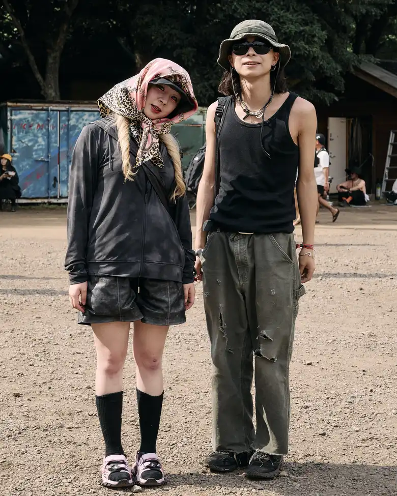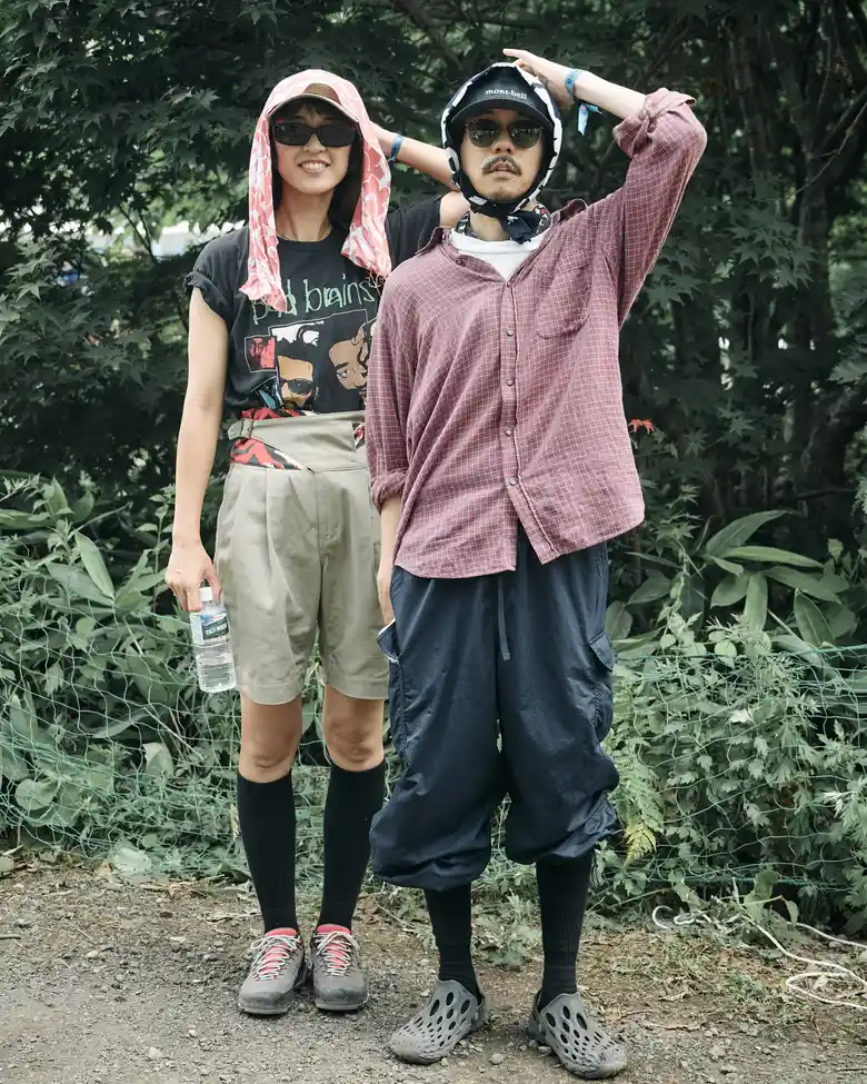 苗場に集まった来場者は、過酷な環境を前提としつつも、機能性だけに縛られない自由なスタイルでファッションを楽しんでいた。