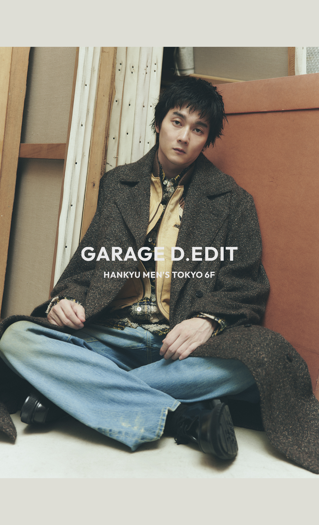 パッチワークのベストからもダメージ加工を施したデニムパンツからも漂うのはノスタルジックなムード。穏やかな表情のアイテムを、モダンに着こなすなら引き締め役が必要。クラフト調の雰囲気を保ちながらクールさも添えるなら、粗めの素材感のコートが適役となる。