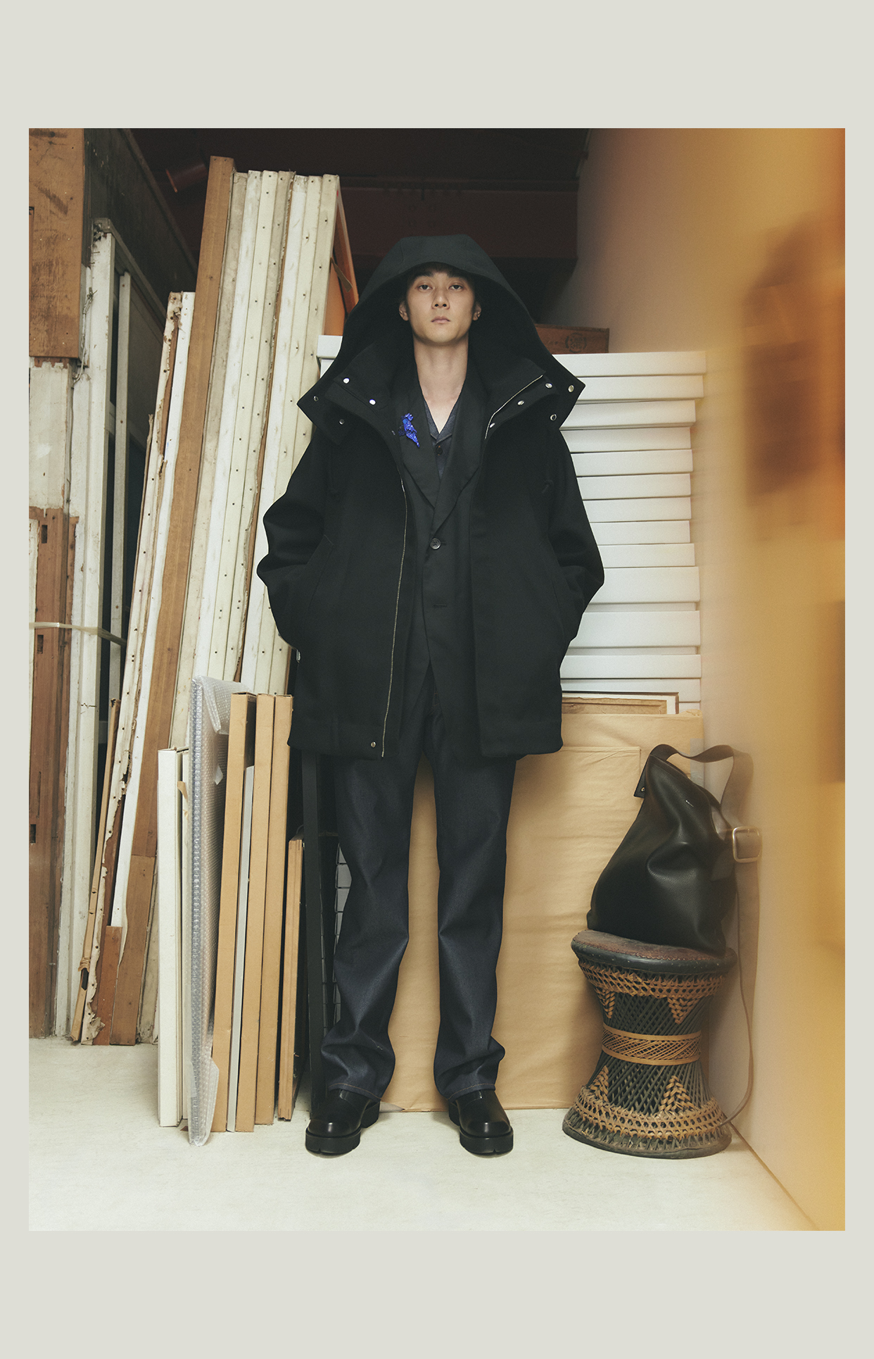 素材を吟味する、パターンを研究する、丁寧な縫製を徹底する。そこから生まれるのは着心地の良さであり、着姿の美しさ。無機質なようでもモノづくりの背景がしっかりと伝わってくるアイテムには、凛々しさと同時に現代的なファッション感度を伴うリラックス感が宿る。
