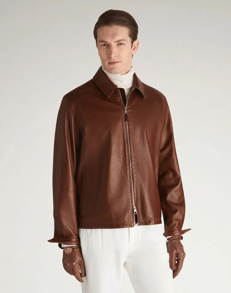 【DUNHILL】レザーポイントカラーブルゾン(ウィスキーカラー) ¥771,100