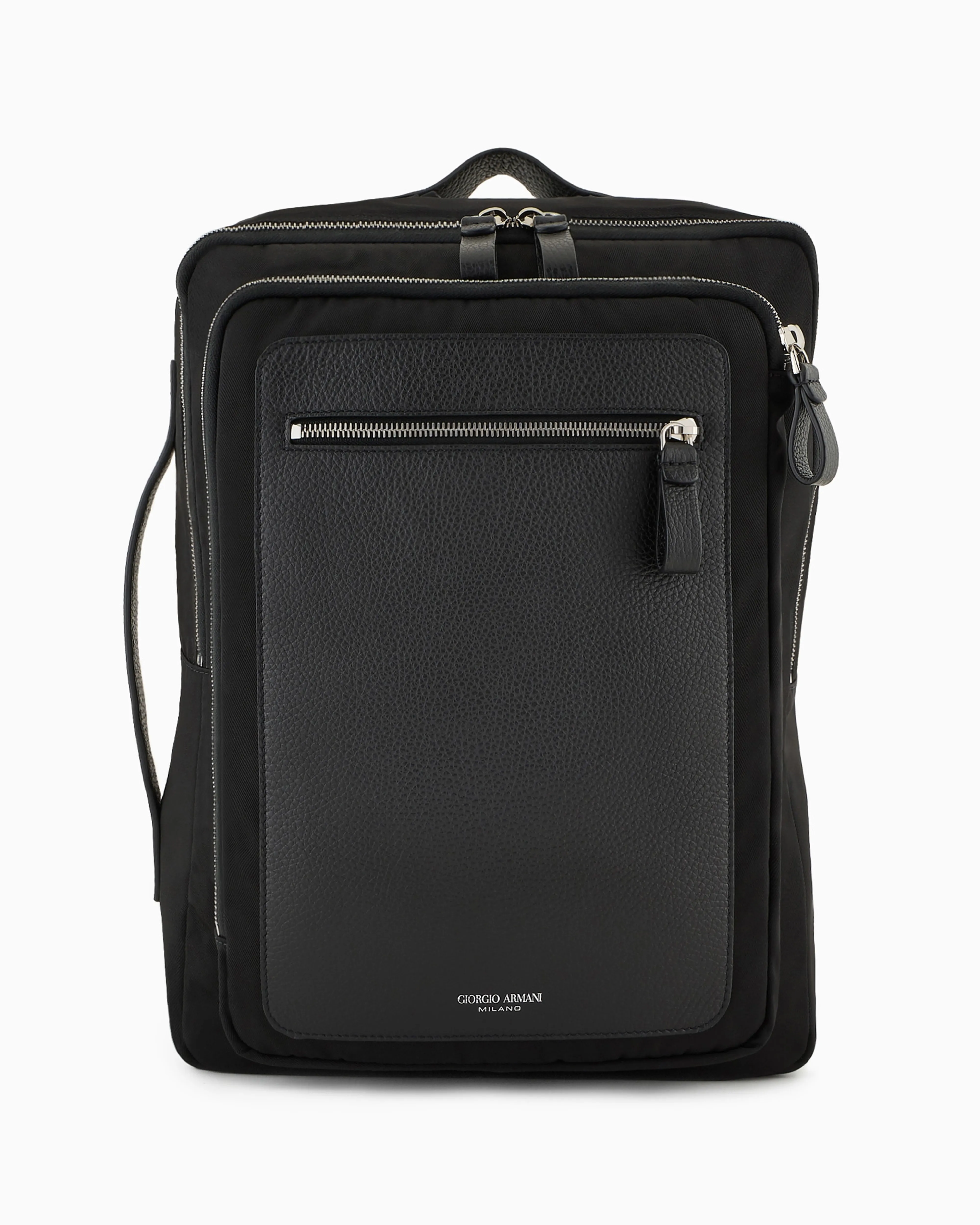 再生ナイロンとペブルドレザーを使用した、新作のブリーフケース バックパック。一日中活躍する、コンパクトでありながら収納にゆとりのあるフォルムです。大きなジップ開閉のコンパートメントを2つ、ノートパソコン用コンパートメントを1つ備える。2本の心地よいパッド入りショルダーストラップは取り外し可能なので、ブリーフケースとして携帯することもできる。都会的な雰囲気が漂う、耐摩耗性に優れたスタイリングしやすいアクセサリー。