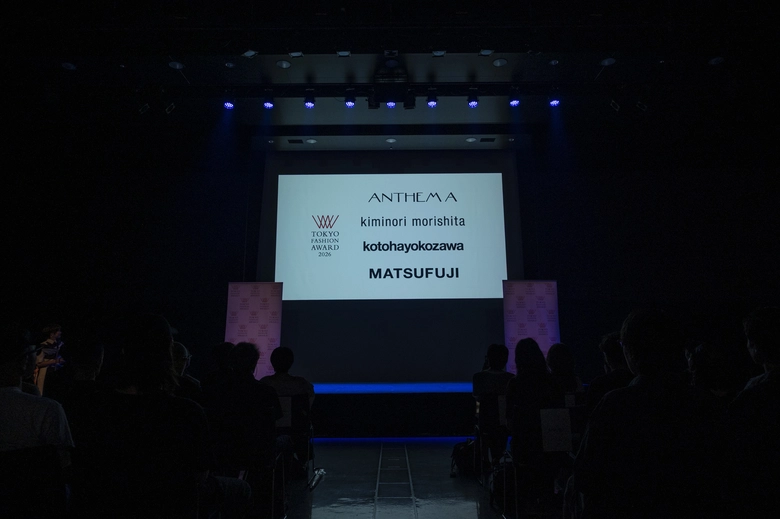 「今回はエントリーブランドのクリエーションのレベルが高い」という声があちこちから挙がったという「TOKYO FASHION AWARD 2026」。選出ブランドの<ANTHEM A(アンセムエー)>、<Kiminori Morishita(キミノリ モリシタ)>、<Kotohayokozawa(コトハヨコザワ)>、<MATSUFUJI(マツフジ)>を日比野はどう見たのか。3つの質問を投げかけた。