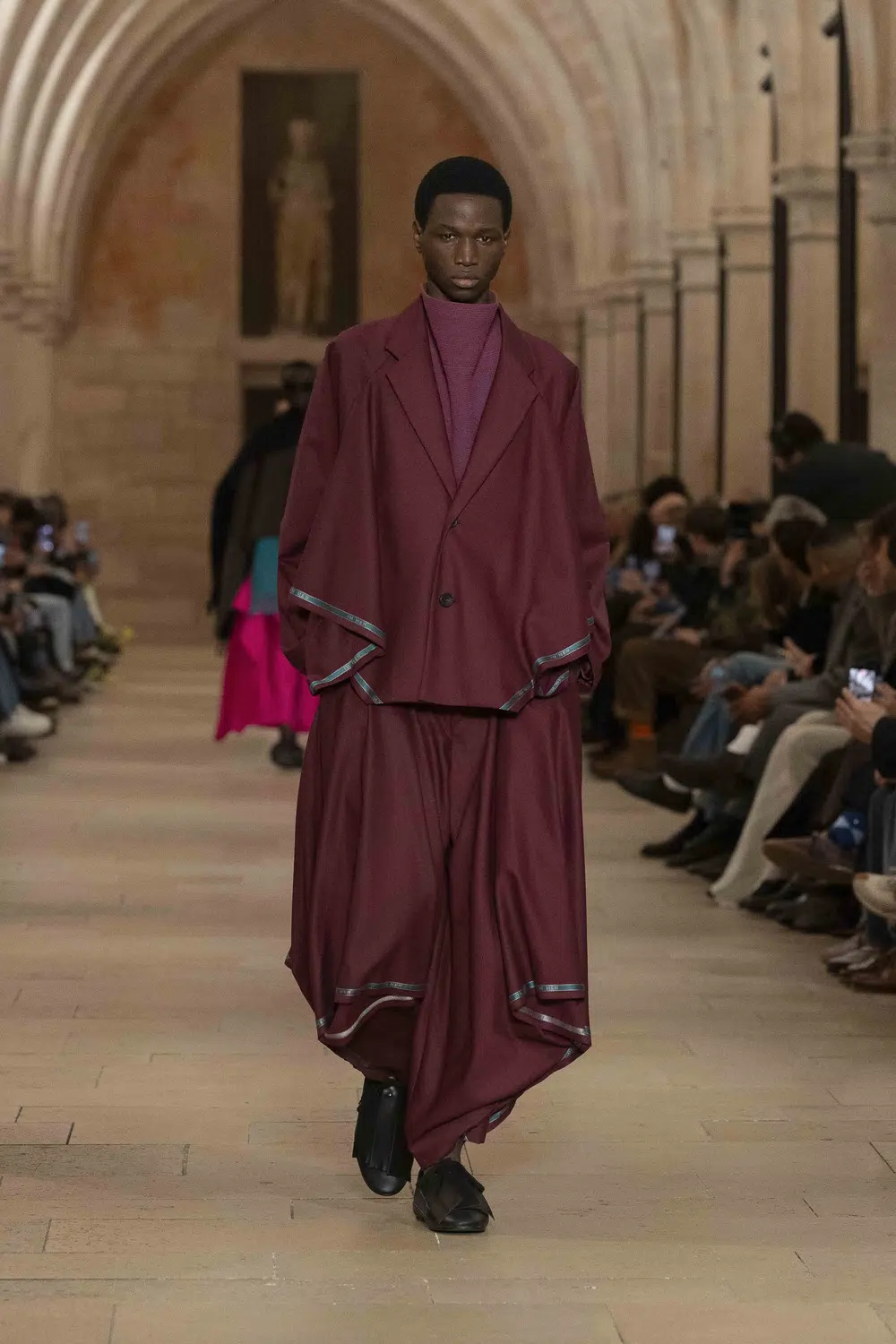 ファーストルックはまさに、形ではなく在り方としてのフォーマルを提示する一着となっていた。
