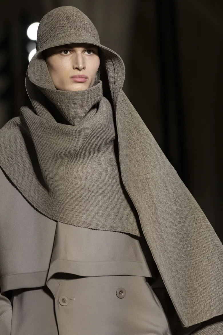 今季のルックは全体的にトーンが落ち着いており、色彩を抑えることで、素材や構造そのものに自然と目が向くよう設計されている。装飾やフォルムの主張も控えめながら、“ちゃんとしている”という気配が、にじむように漂っていた。