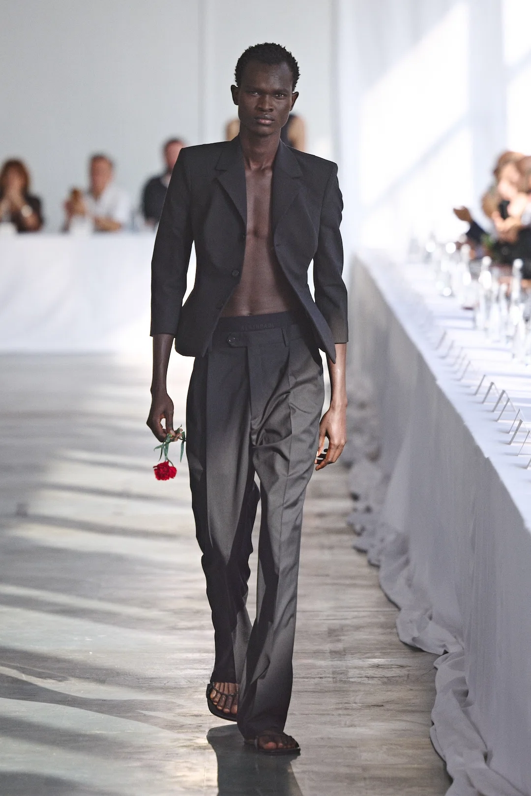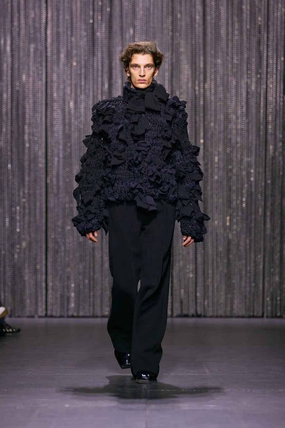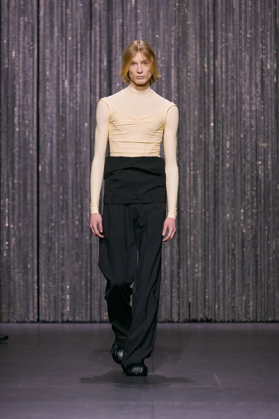 アラン:最も重視しているのは、観客とパフォーマーが同じ体験を共有していると感じられる場であることです。距離を近く保つことで、空気や緊張感、親密さの温度がそろっていく。ショーは単に服を見せるための展示ではなく、観る人もどこかで参加していると感じられるパフォーマンスであってほしいと思っています。