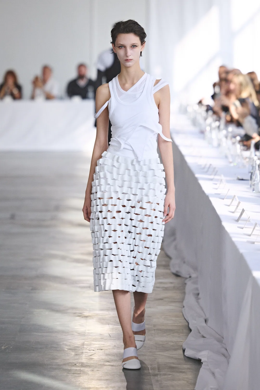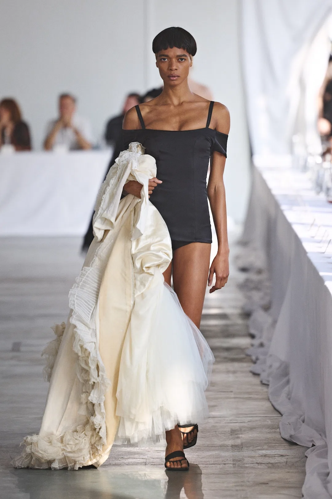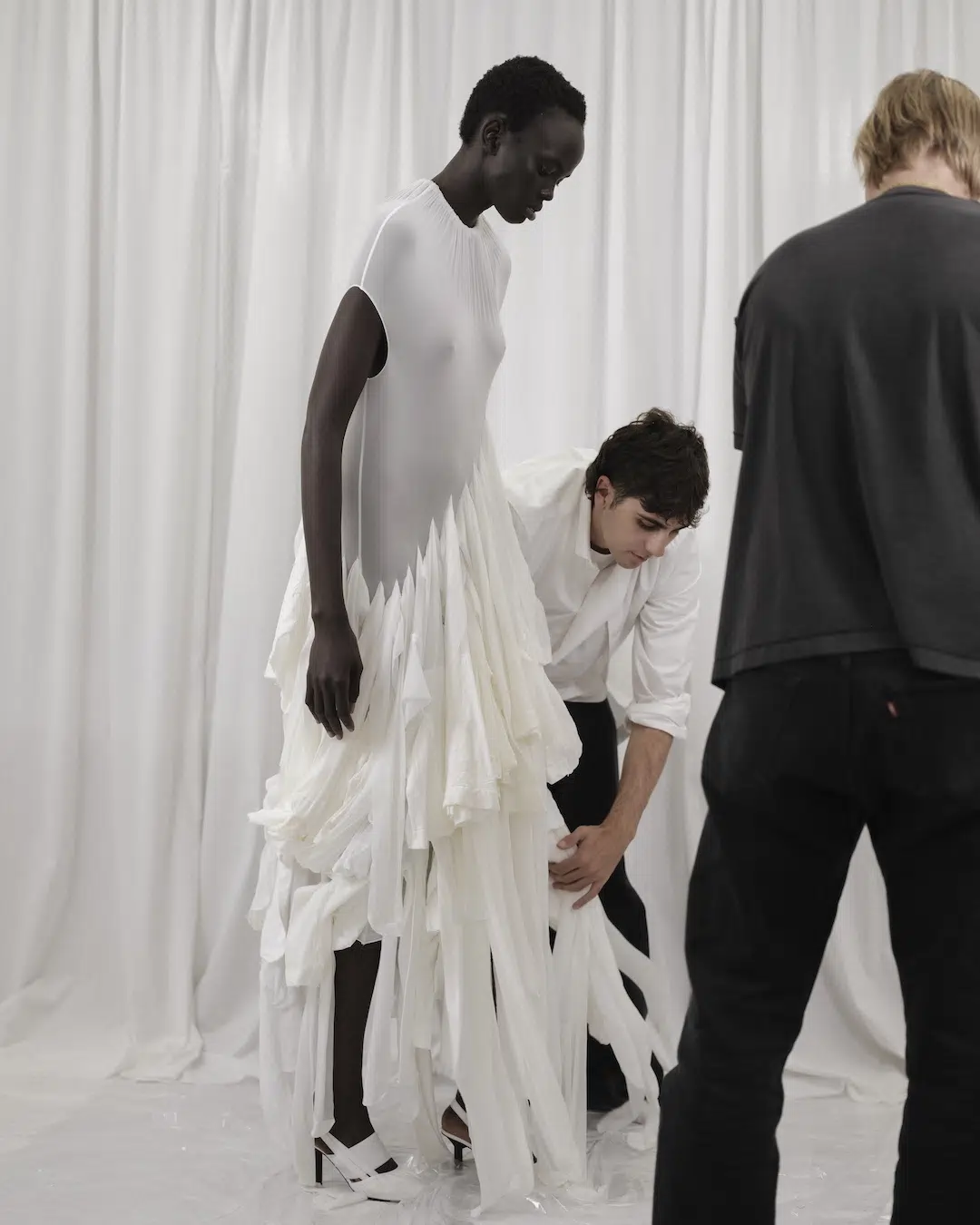 アラン:最も重視しているのは、観客とパフォーマーが同じ体験を共有していると感じられる場であることです。距離を近く保つことで、空気や緊張感、親密さの温度がそろっていく。ショーは単に服を見せるための展示ではなく、観る人もどこかで参加していると感じられるパフォーマンスであってほしいと思っています。