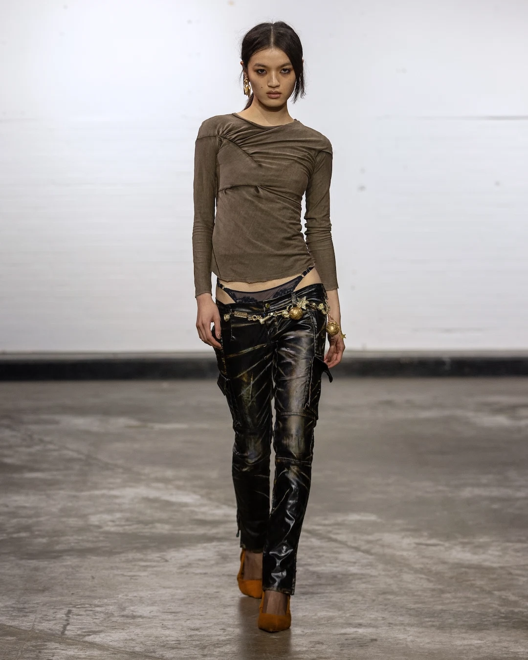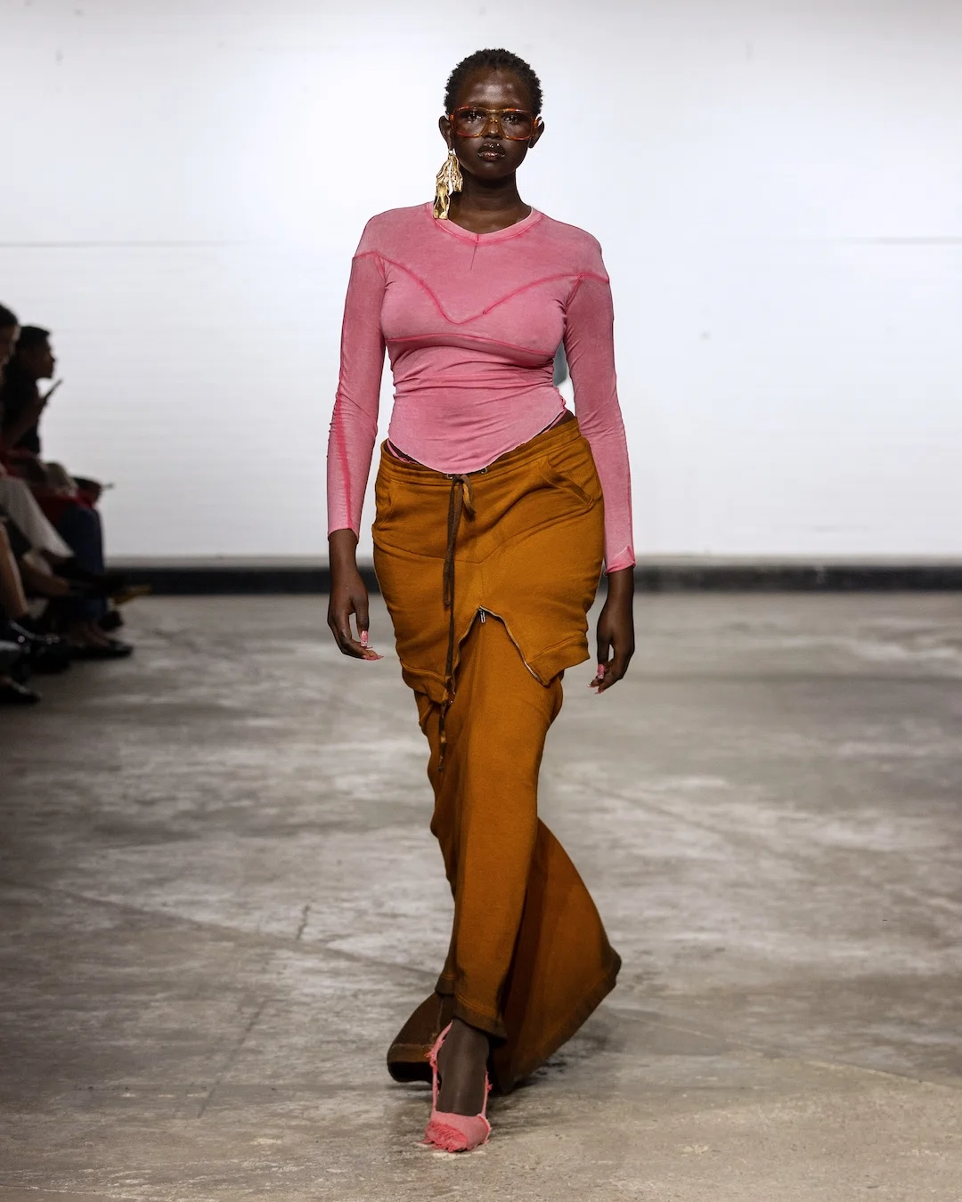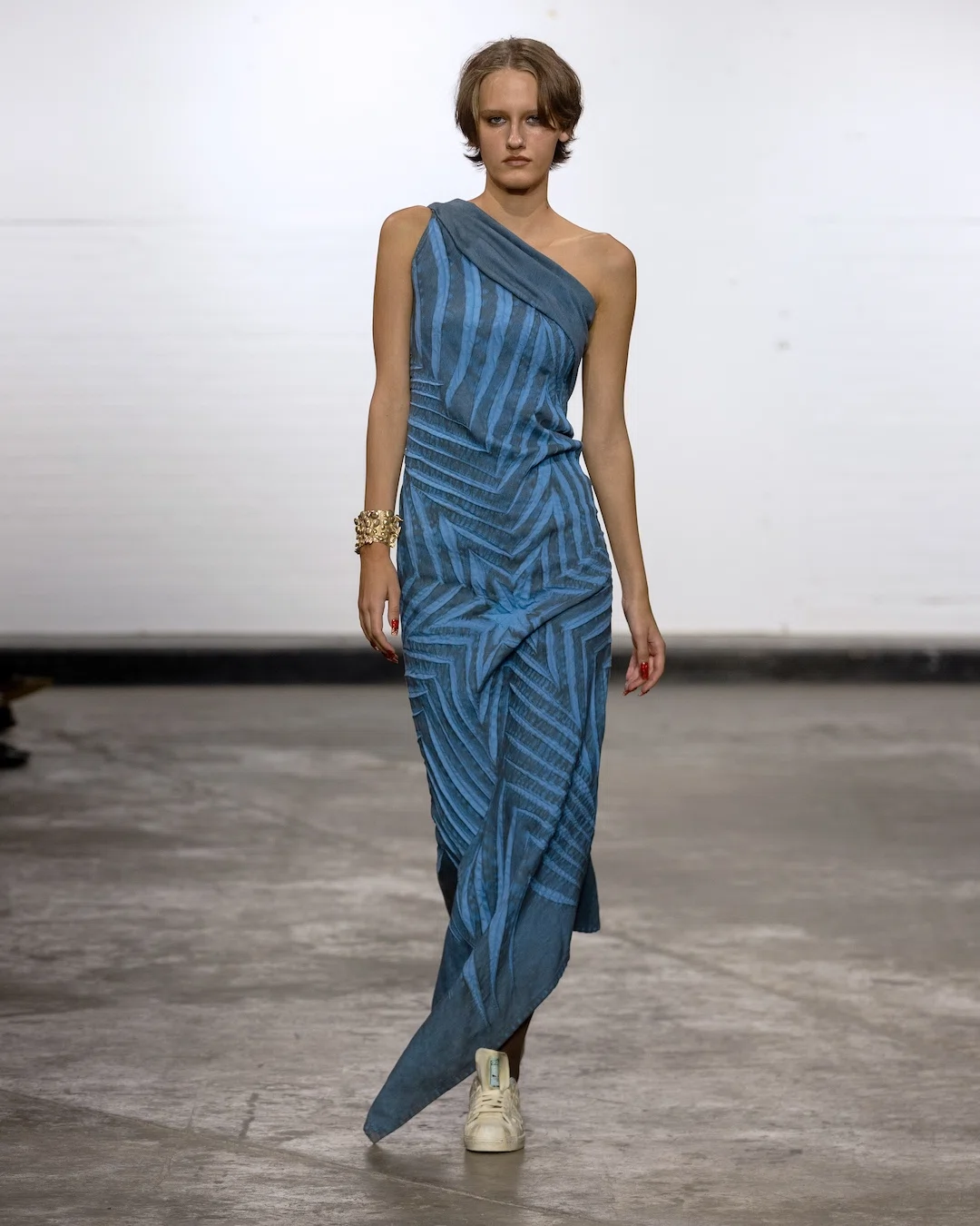 また、布が体にまとわりつく様子、音を立てて揺れ動く様、そうした「動き」を服の構築に取り入れるのが好きです。もちろんエレガンスは好きですが、それをもっと自由で直感的なかたちで表現したいんです。あえて「少しズレている」感じに魅力があると思うんです。