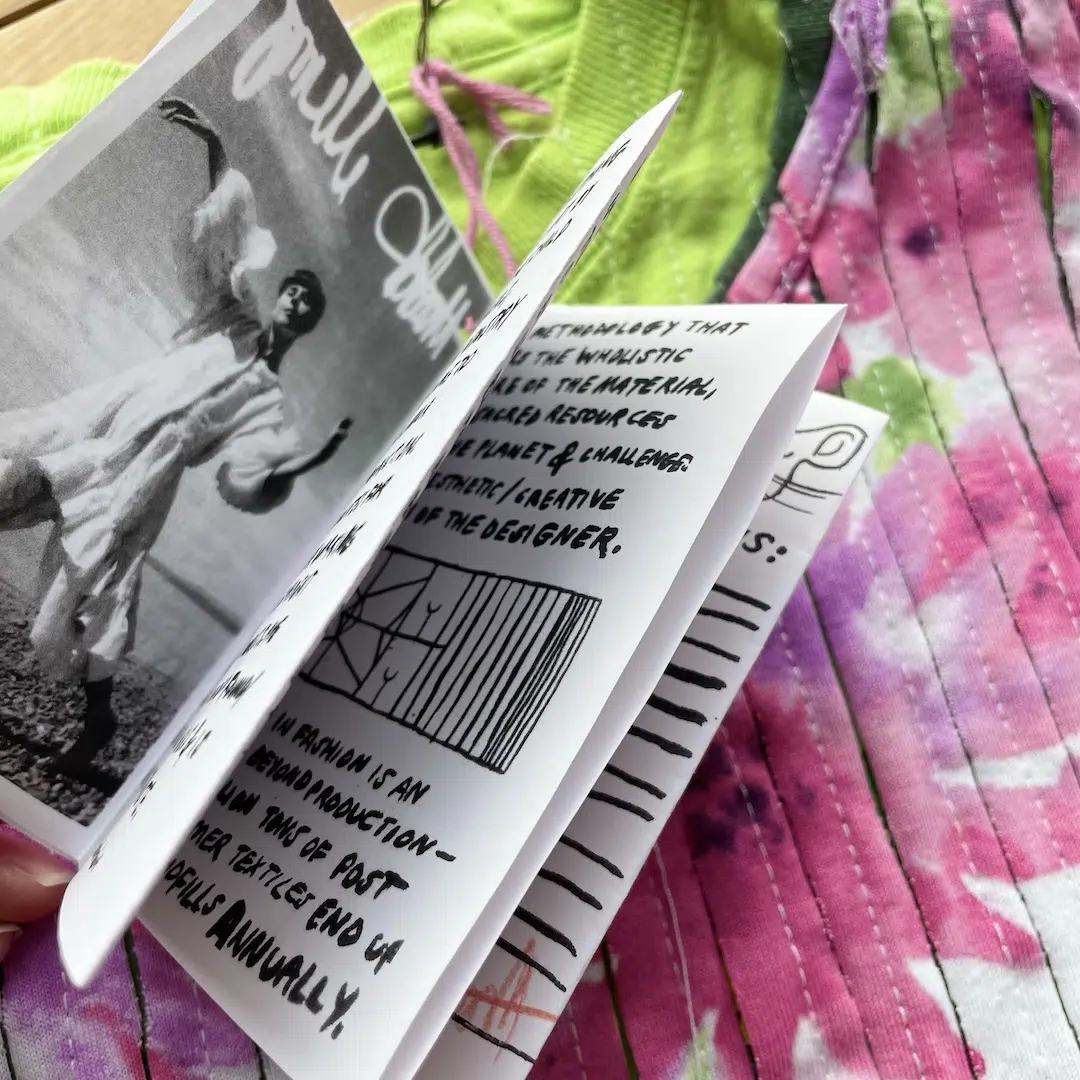 アップサイクリング、ゼロウェイストデザイン、手作業を通じて、過剰消費社会から再生された素材を用いた衣服やアートを創作しています。