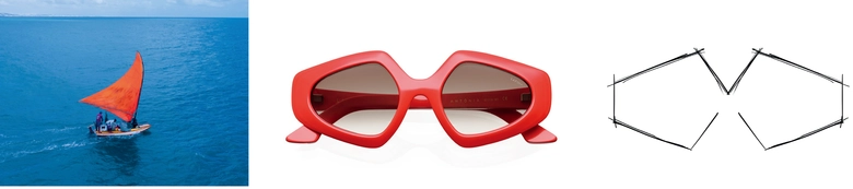 <LAPIMA>を選んでくれて本当にうれしいです。ありがとうございます。「Antonia」はブラジル北東部のアキラスの伝統的な漁船、ジャンガダの帆からインスピレーションを得たものです。まるで海上でバレエを踊っているかのような帆の動きに魅了されました。当時の<LAPIMA>は丸みを帯びたフレームしかデザインしていなかったのですが、帆の動きを目にした瞬間に全てが変わりました。帆からのインスピレーヨンによってシャープで角張ったフォルムが生まれ、彫刻的な柔らかさも加わりました。そのコントラストが新しいデザインとなり、「Antonia」は私にとってターニングポイントと言えます。多くのコレクションの中でも私のお気に入りのひとつです。