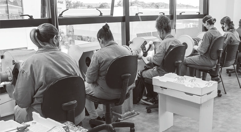 ブラジルには刺繍から寄木細工まで、豊かな伝統工芸があります。私たちは人と人とのつながり、思いやり、そして直感を大切にしています。<LAPIMA>の手仕事というのは単に古くからの技法を慈しむものではなく、独自性と表現力を大切にした結果です。ハンドメイドでフレームシェイプを形成し、表面処理をし、そして作品に感情と命を吹き込んでいるのです。
