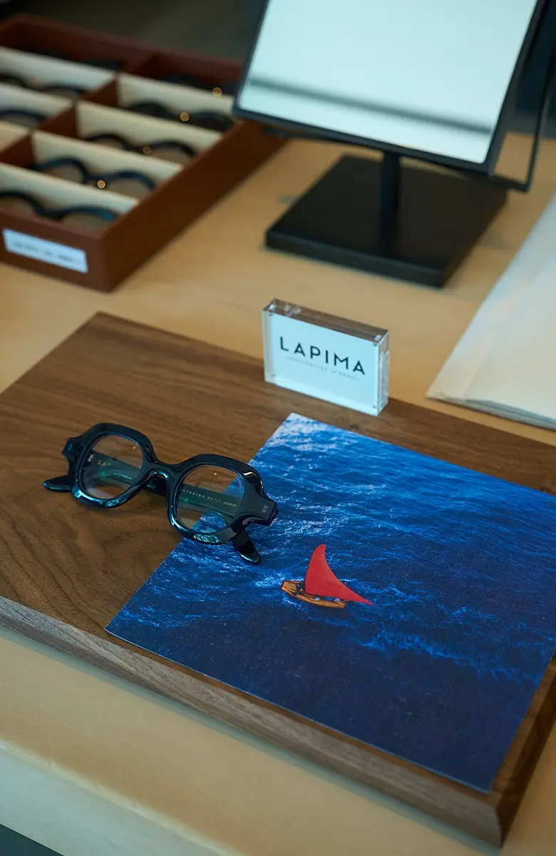 <LAPIMA>はブラジル発、職人技と建築的美学を融合させたアイウェアブランド。流行や大量生産に抗い、彫刻のように削り出す造形と、自然や文化に根差したデザイン哲学が魅力。掛ける人の内面を引き出す“存在感のある美”を提案する。