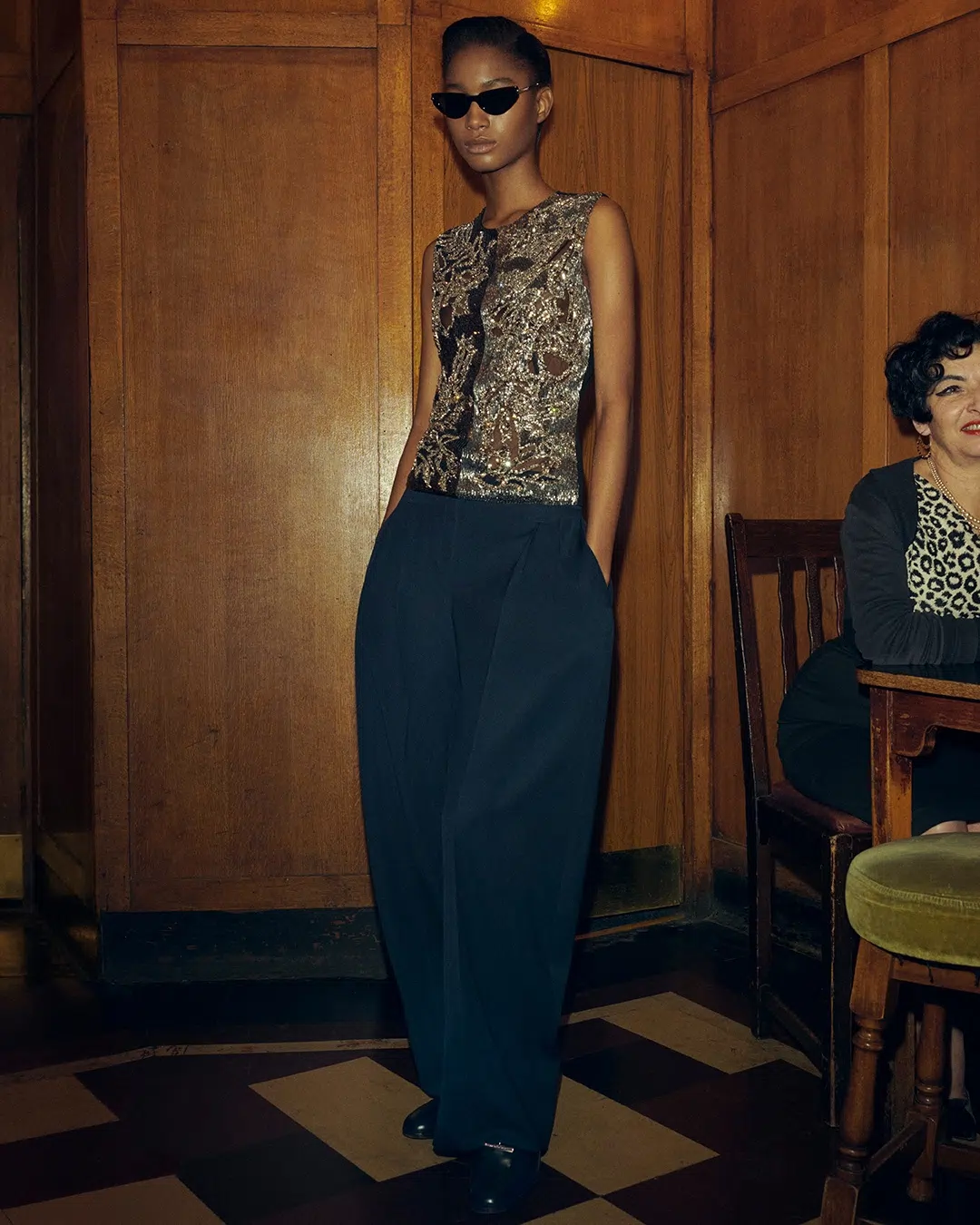 ロンドン、ソーホーは、過去と現在、形式と逸脱、静と動が共鳴し合う場所。そこに息づく不変のスピリットが、<McQueen>のテーラリングと刺繍、そして唯一無二の世界観を通して鮮やかに描き出されている。