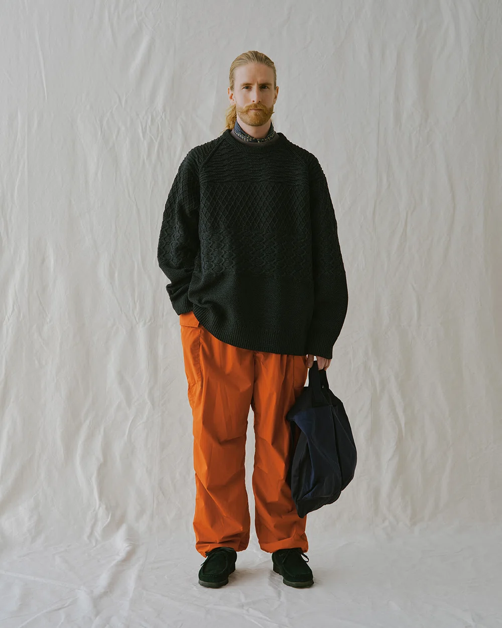 鮮やかな色に挑戦するのが難しく感じるときは、小物で取り入れるのが正解。バッグやシューズ、グローブ、マフラーなど、日常的に使うアイテムにオレンジを選ぶだけで、季節感が自然と高まる。