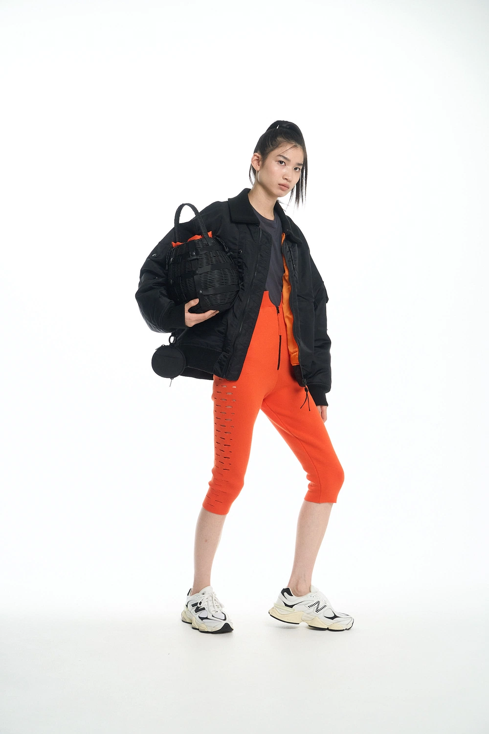 一方で、エレガントなコートやワンピースにオレンジのスポーティーアイテムをひとつ添えるだけで、意外性のあるミックス感も。シーズンを問わず新鮮な着こなしを楽しめるアプローチとしても◎。