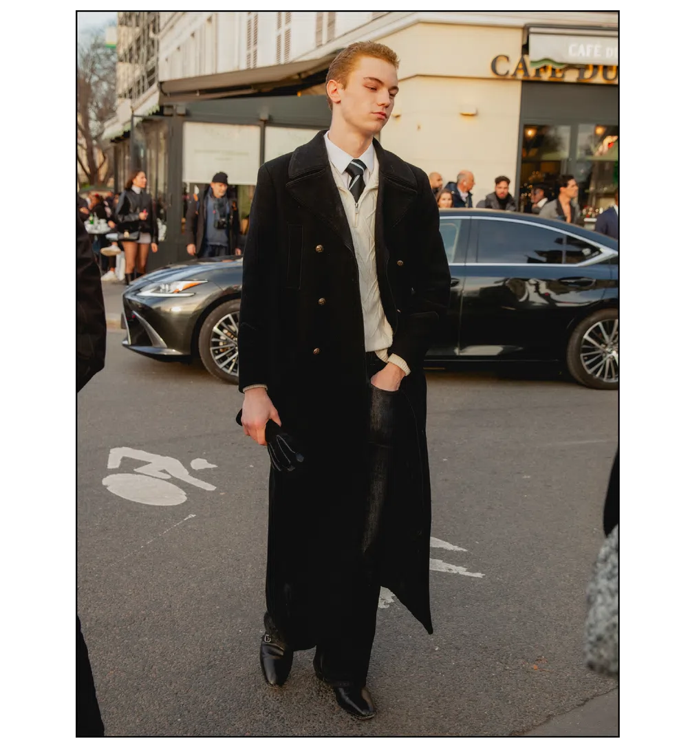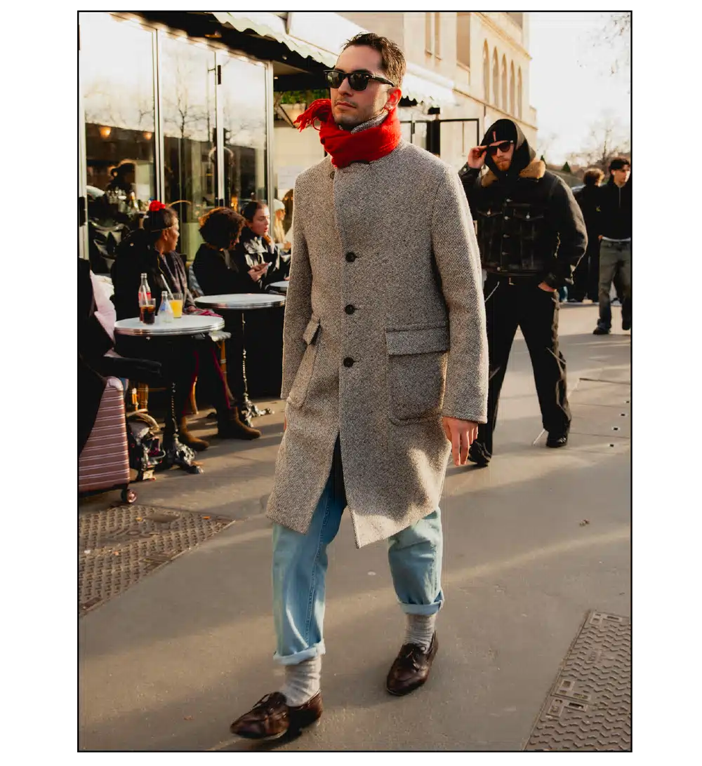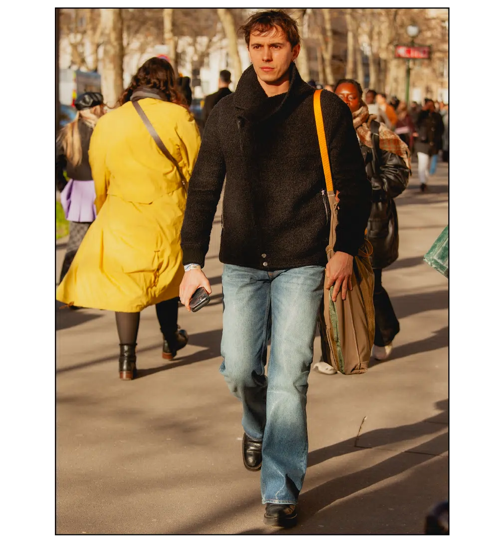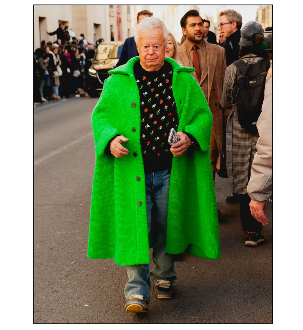 ランウェイを闊歩するモデルを現代の「フラヌール(遊歩者)」、すなわちクチュールの歴史との新たな繋がりに衝撃を受け、パリを彷徨う貴族の若者に見立てた<DIOR(ディオール)>。デザイナーはポール・ポワレの流動的な美学を引用しつつ、フォーマルとデニム、テーラードとテクニカル、あるいは古きものと新しきものといった相反する要素を、見事な調和のもとに共存させてみせた。その世界観に呼応するように、来場者たちの装いもまた、新旧をしなやかに行き来する感性に満ちていた。