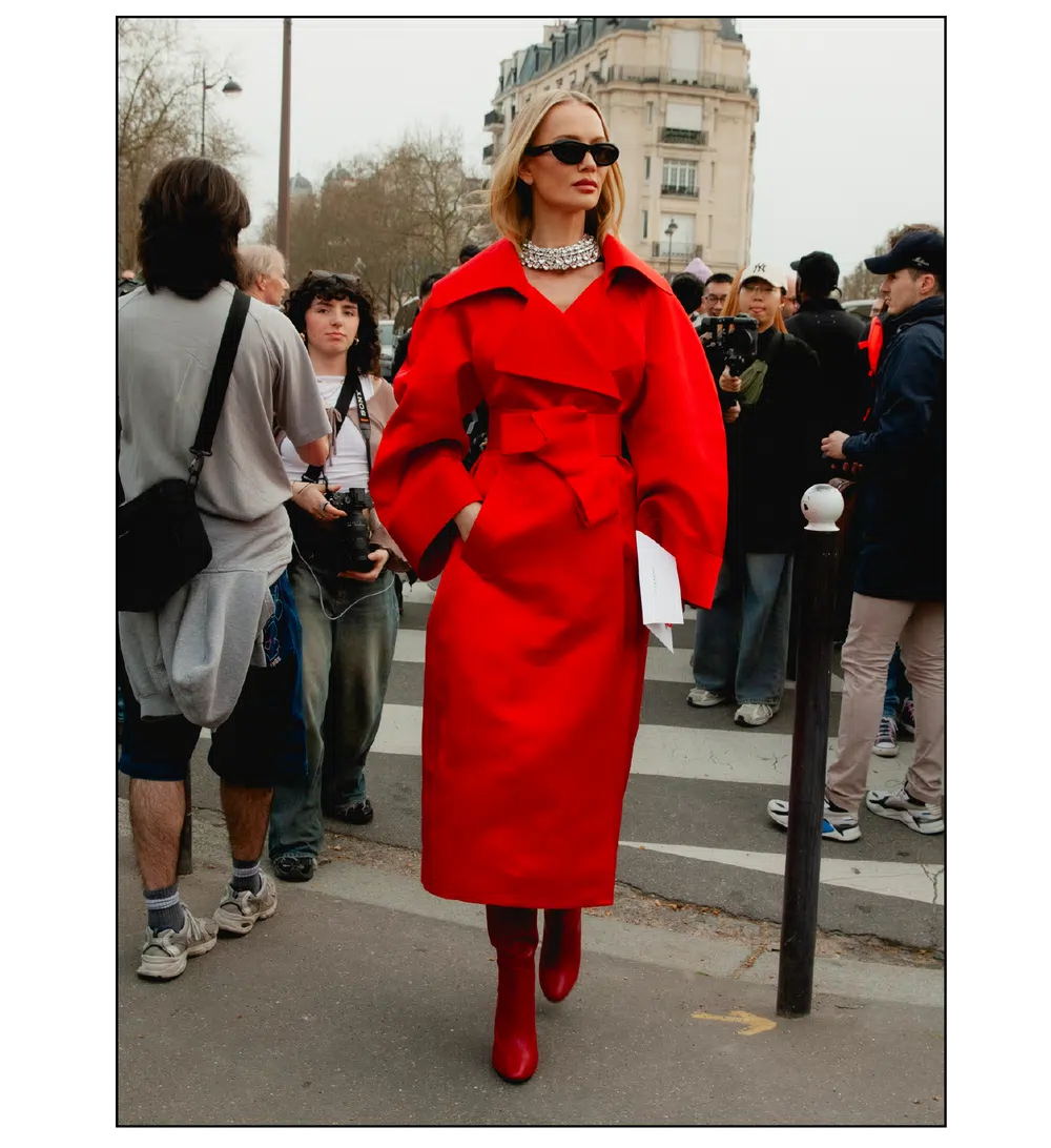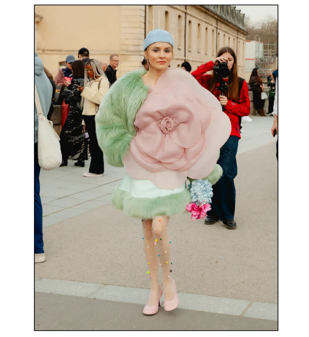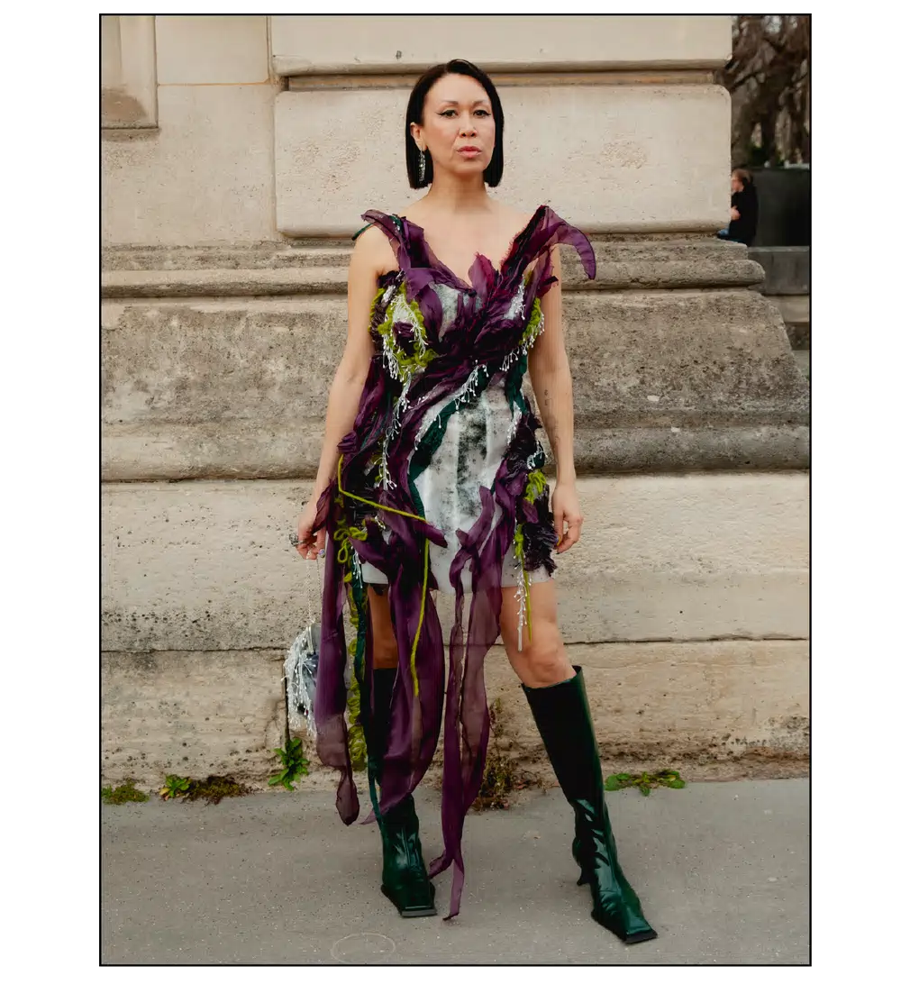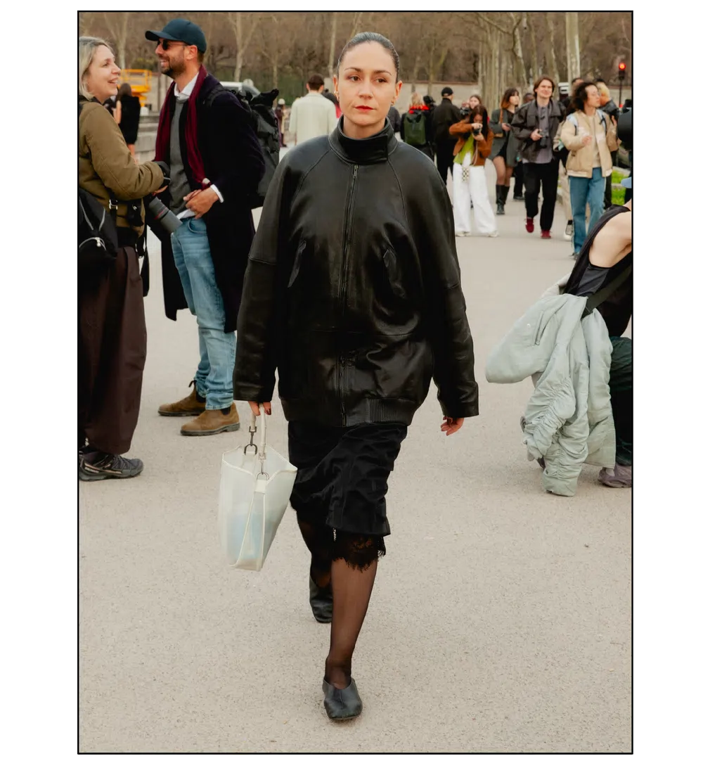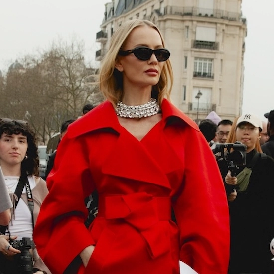 「いかにして自己を取り戻すか」という問いを掲げ、現代女性の現実に寄り添う新たなワードローブを提示したサラ・バートン率いる<GIVENCHY(ジバンシィ)>。中でも視線を奪ったのは、身体の構造を意識した厳格なテーラリングと、柔らかな曲線を描く彫刻的なドレープが生み出す、美しい対比と静かな緊張感だ。この洗練されたクリエイションを目撃した来場者たちのスタイルもまた、揺るぎない自己とエレガンスを、それぞれの装いへと確かに投影していた。