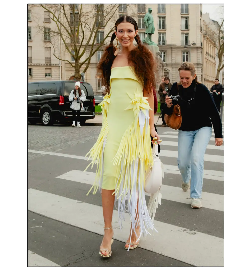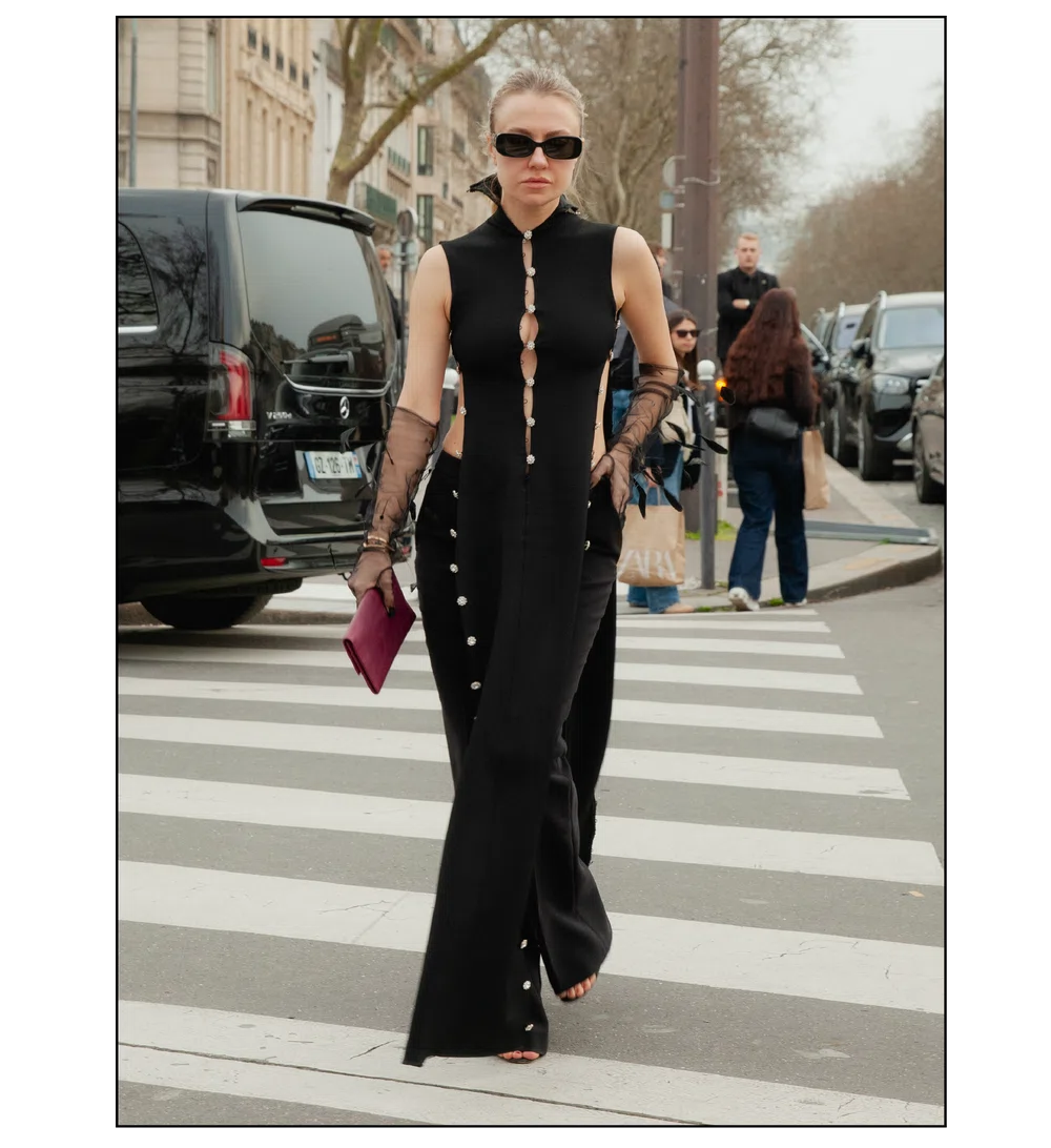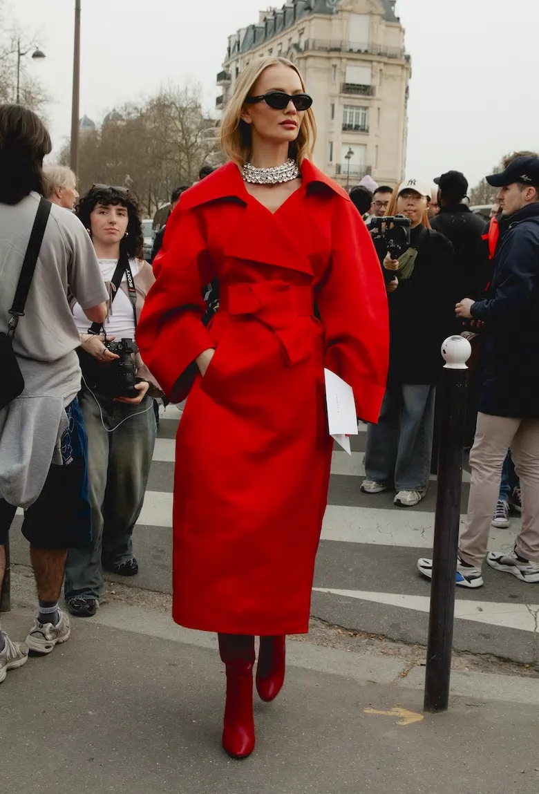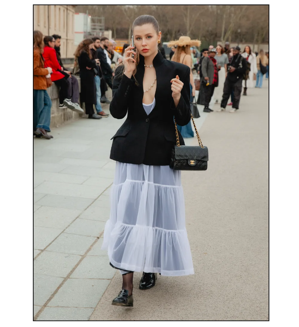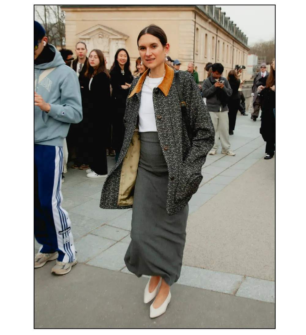 「いかにして自己を取り戻すか」という問いを掲げ、現代女性の現実に寄り添う新たなワードローブを提示したサラ・バートン率いる<GIVENCHY(ジバンシィ)>。中でも視線を奪ったのは、身体の構造を意識した厳格なテーラリングと、柔らかな曲線を描く彫刻的なドレープが生み出す、美しい対比と静かな緊張感だ。この洗練されたクリエイションを目撃した来場者たちのスタイルもまた、揺るぎない自己とエレガンスを、それぞれの装いへと確かに投影していた。