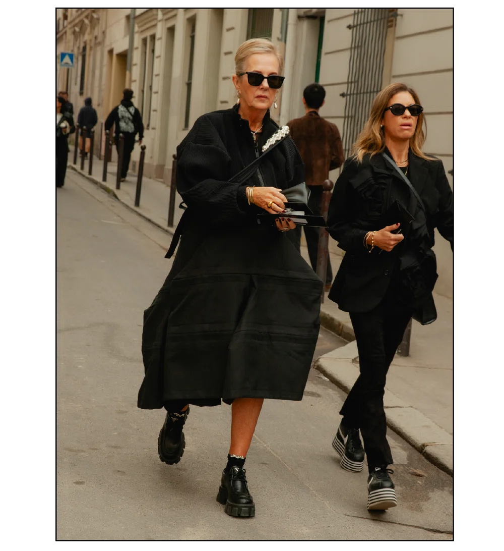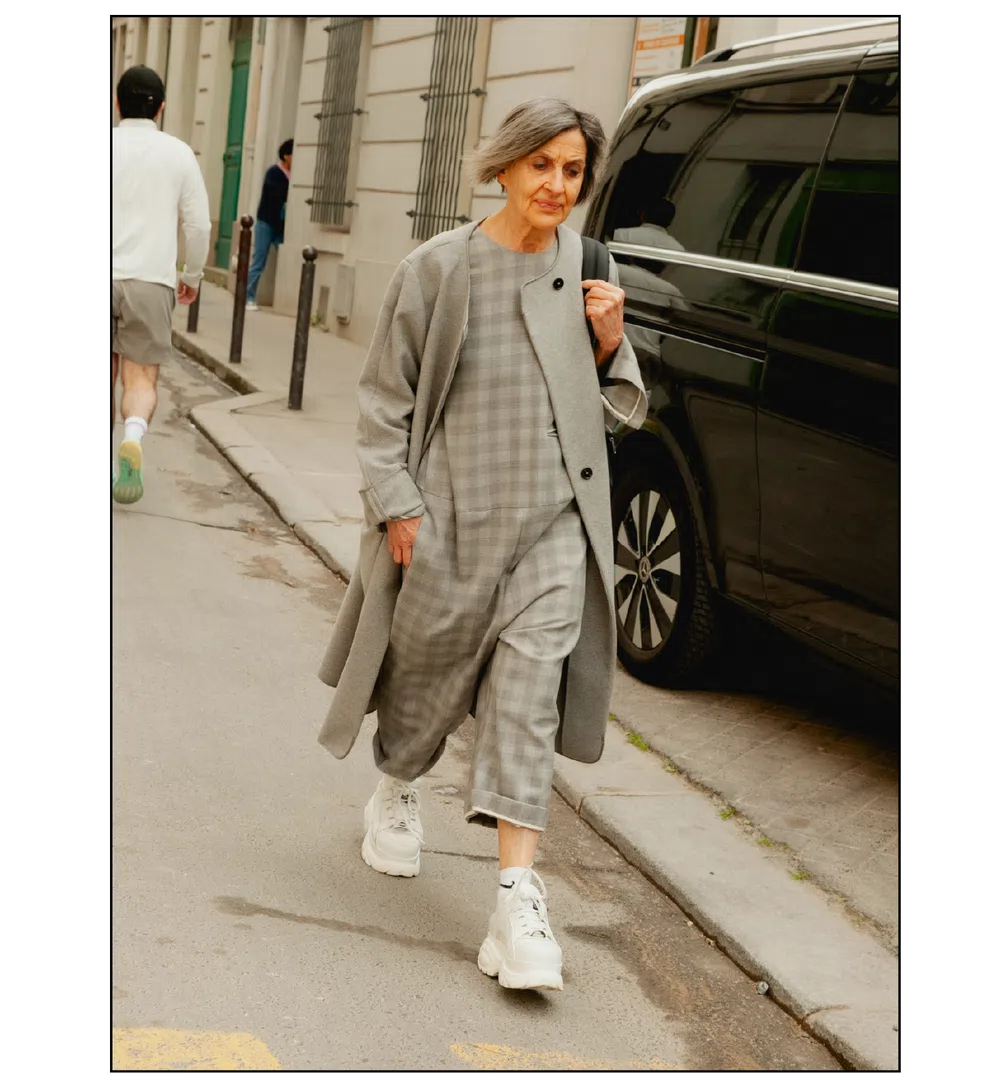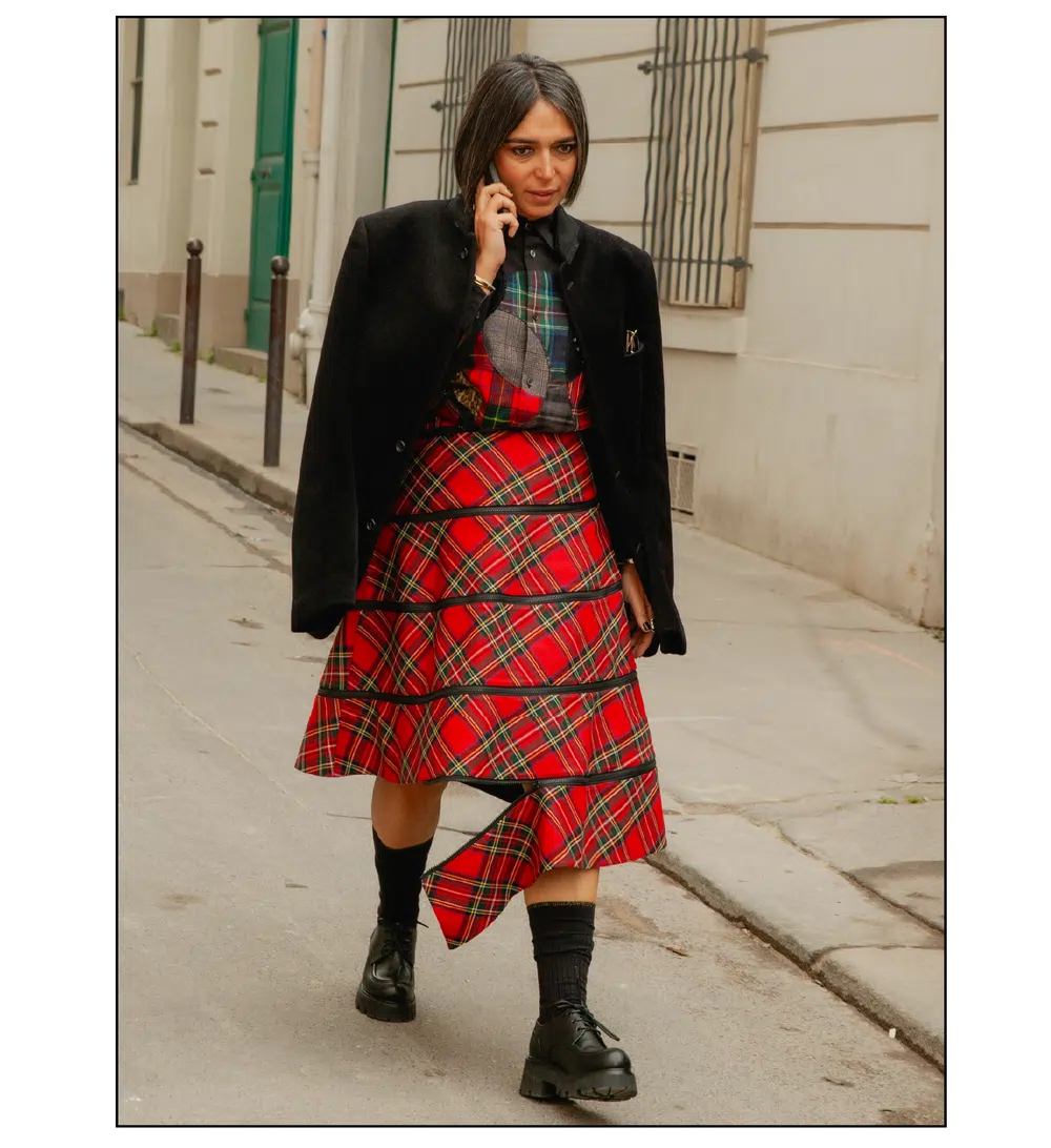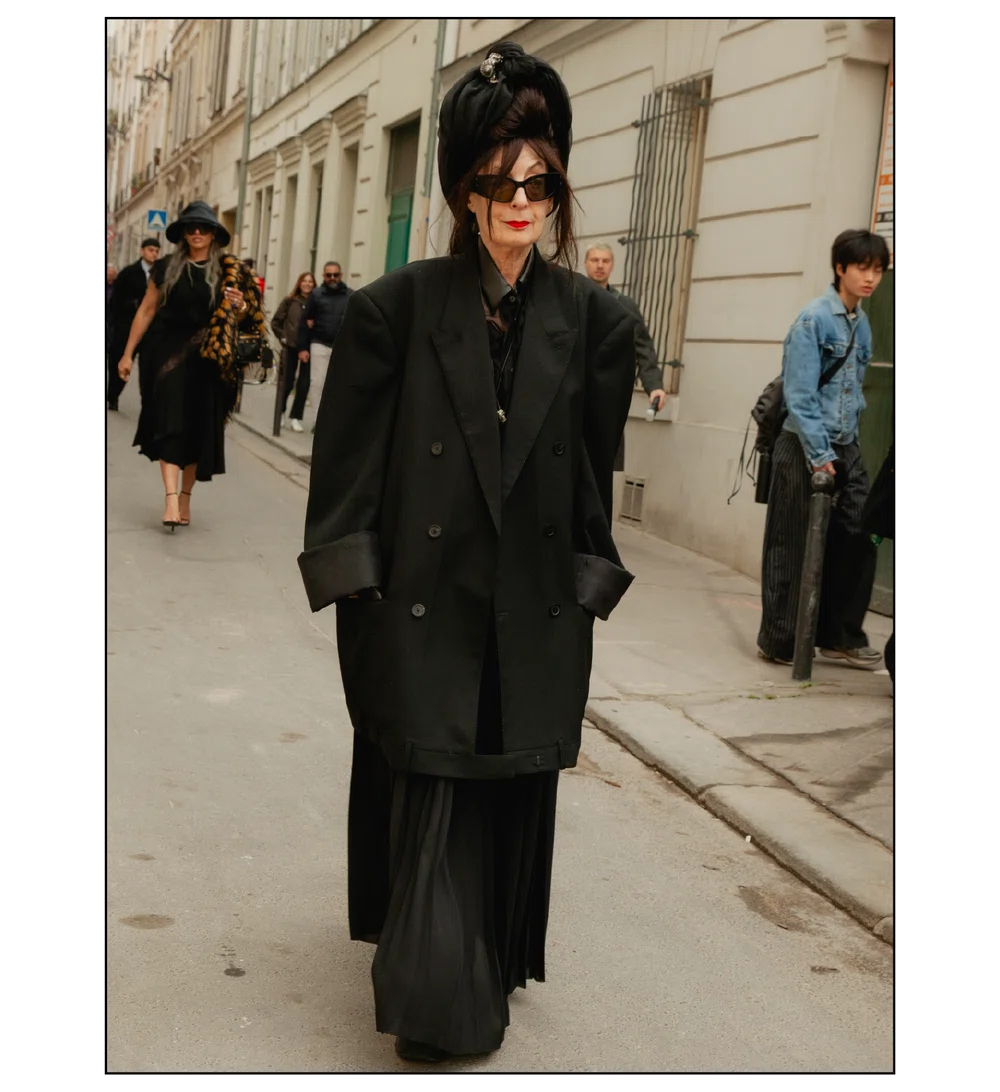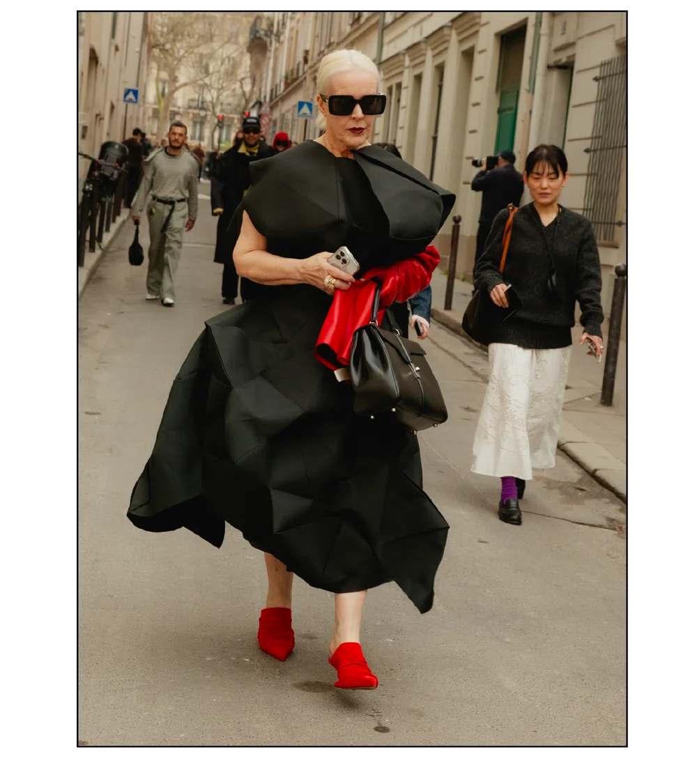 「The Art of Assemblage」という言葉を掲げ、異質な要素の結合から生まれる新たな造形美を提示した<JUNYA WATANABE(ジュンヤ ワタナベ)>。中でも視線を奪ったのは、情熱的なタンゴの調べとチェッカーボード柄のランウェイが交差する舞台で放たれた、日常着の文脈を解体・再構築する圧倒的なパッチワークと実験的なアプローチだ。この革新的なクリエイションを目撃した来場者たちのスタイルもまた、既成概念に縛られない自由な精神とアイデンティティを、それぞれの装いへと力強く投影していた。