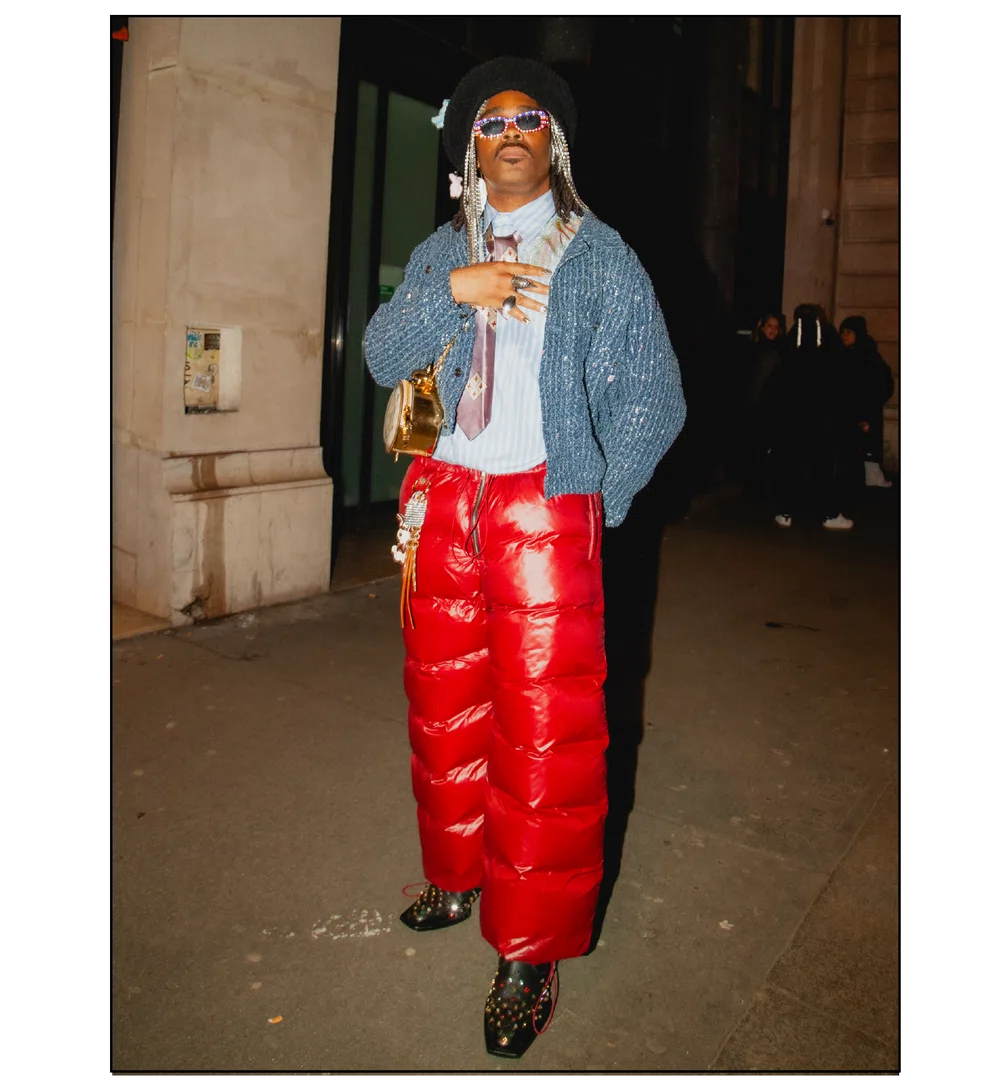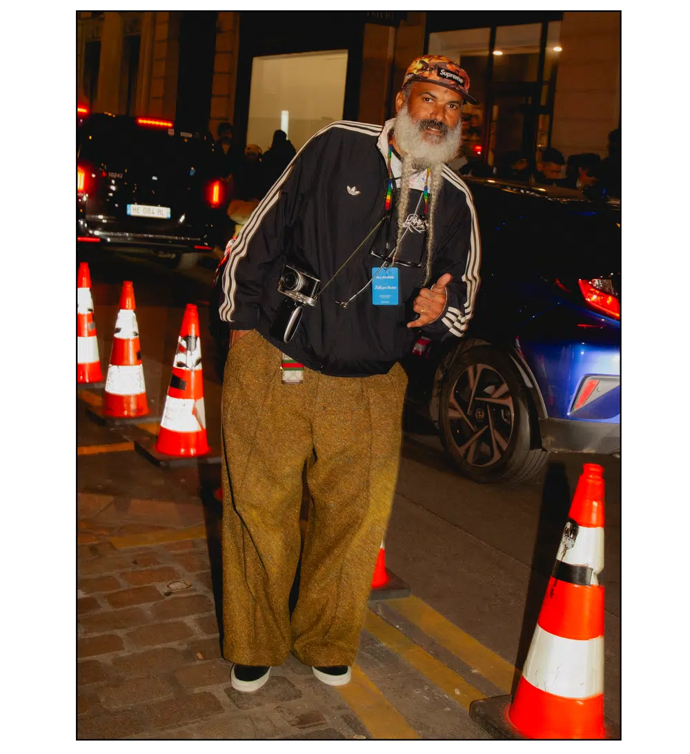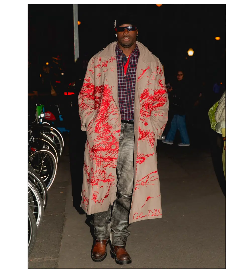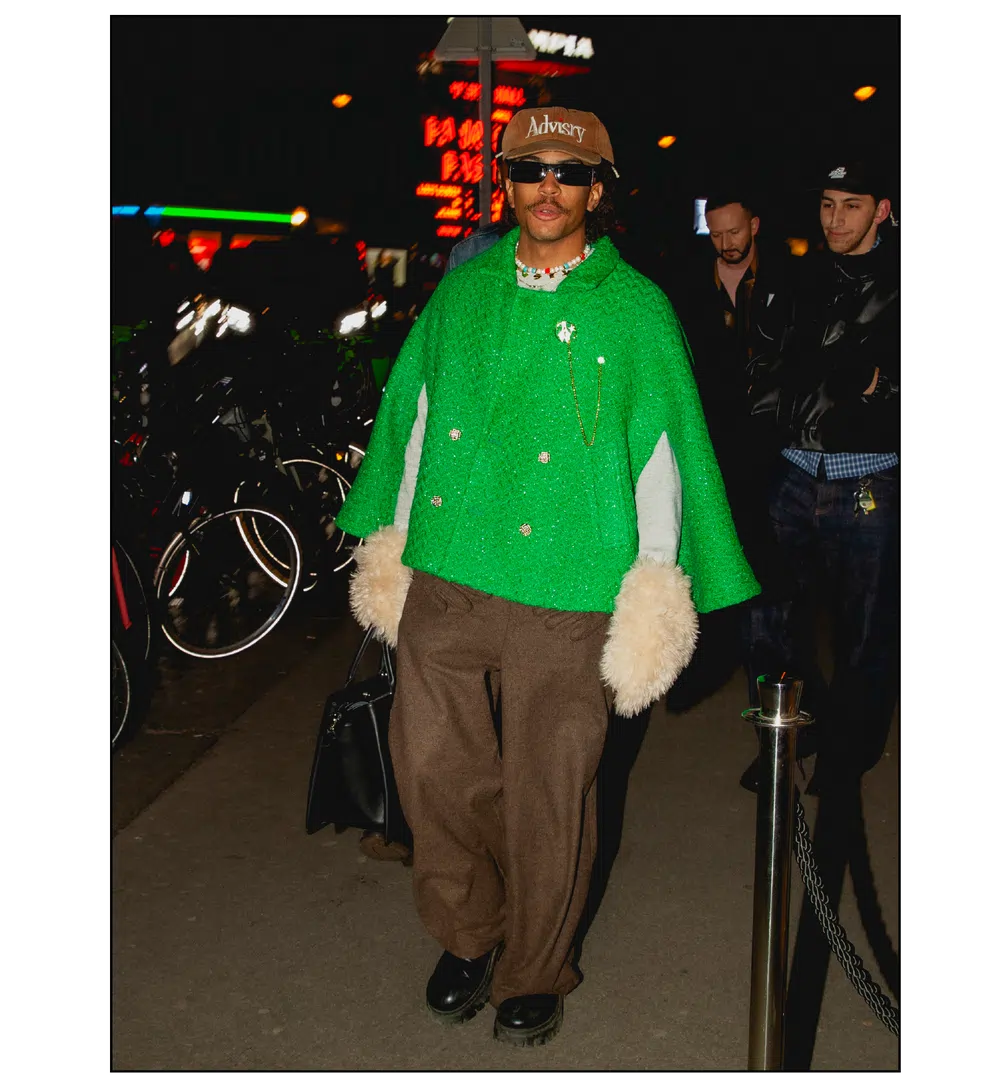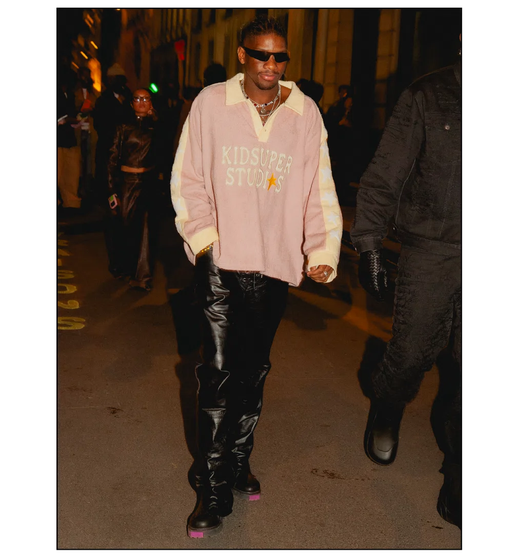 「OUTSIDE THE BOX」をテーマに、ファッションを実験場として捉え直し、映画という媒体への扉を開いた<KidSuper>。これまで演劇、コメディ、スポーツなど様々なカルチャーをショーに取り込んできたデザイナーのコルム・ディレイン。今季はパンデミック期に執筆活動を通して培った映画制作への情熱を再燃させ、クリエイションの新たな側面である「成熟」と「内省」を披露した。コレクションを目撃した来場者たちのスタイルも、ファッションへの力強い情熱が宿っていた。