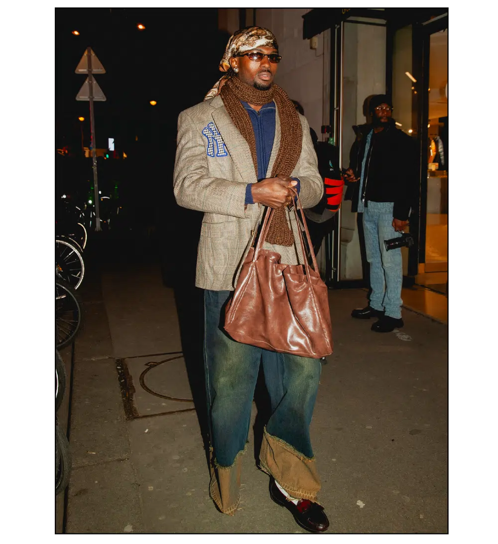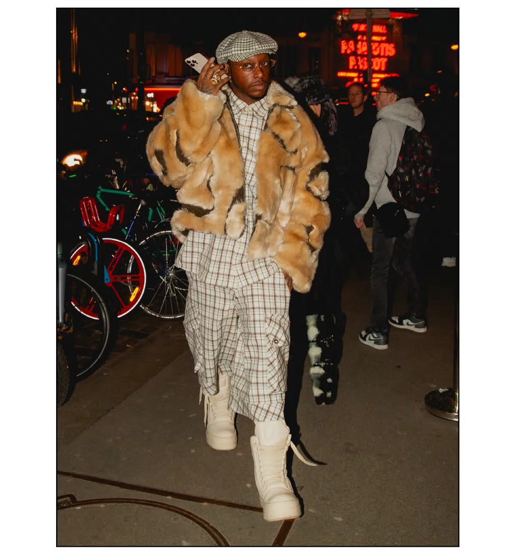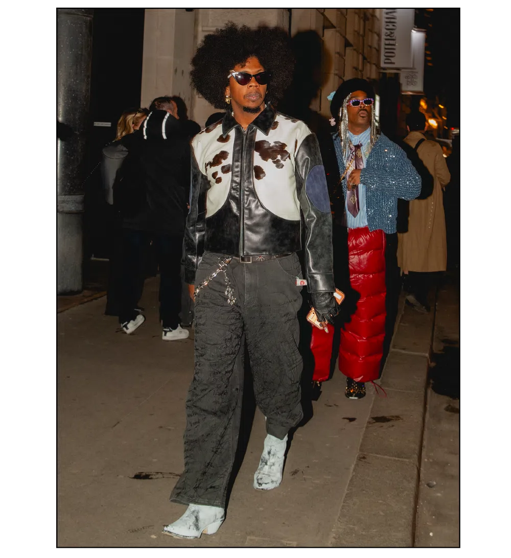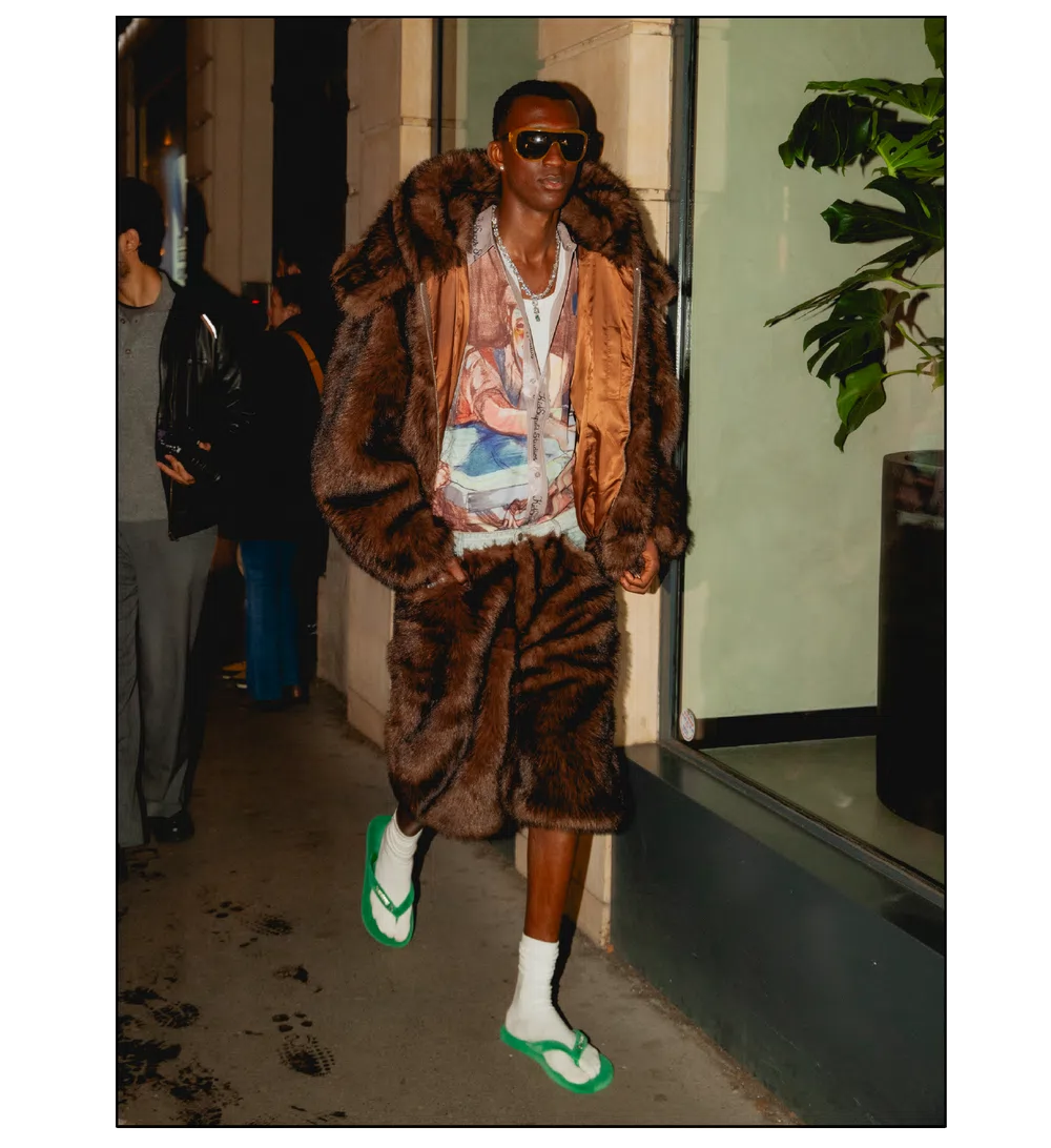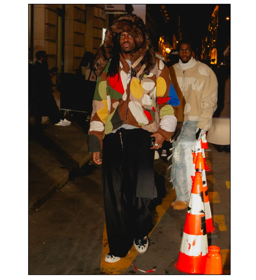 「OUTSIDE THE BOX」をテーマに、ファッションを実験場として捉え直し、映画という媒体への扉を開いた<KidSuper>。これまで演劇、コメディ、スポーツなど様々なカルチャーをショーに取り込んできたデザイナーのコルム・ディレイン。今季はパンデミック期に執筆活動を通して培った映画制作への情熱を再燃させ、クリエイションの新たな側面である「成熟」と「内省」を披露した。コレクションを目撃した来場者たちのスタイルも、ファッションへの力強い情熱が宿っていた。