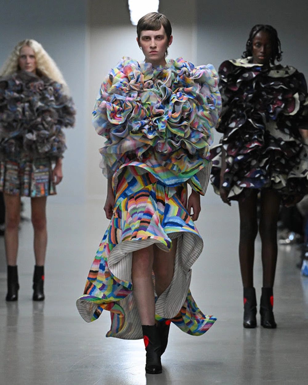 一着が複数の形へと移ろう余白は、属しながら自分であるための静かな抵抗となり、ウクライナの現実と個の内面を結びつけるコレクションだった。