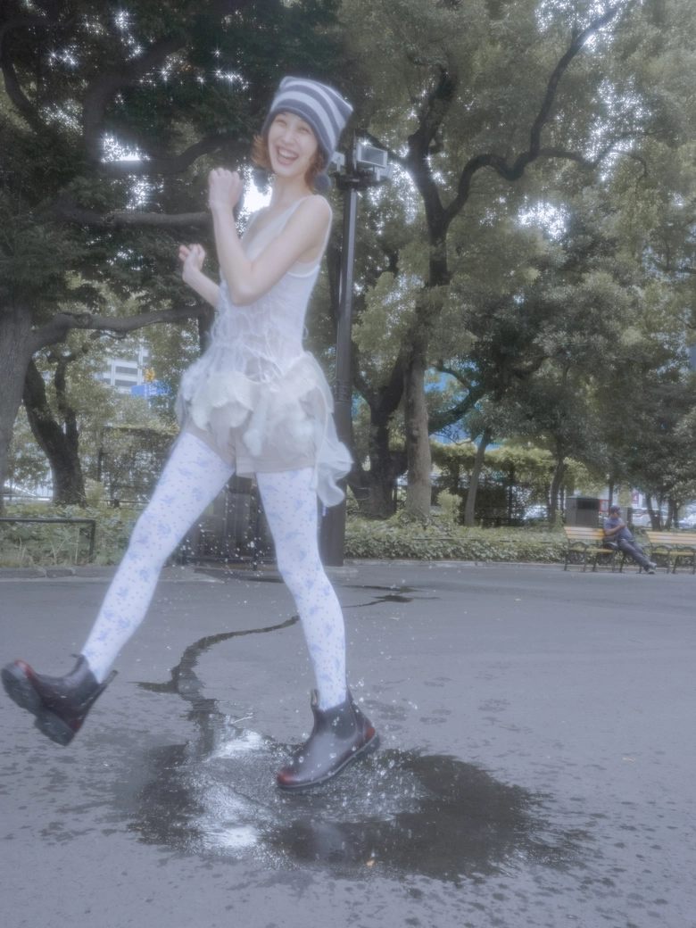 ふわふわのバッグ、キラキラのパンツ。いくつになっても変わらず好きなものを身につけていたい。だけど、かわいいだけでは終われないのも事実。シアータイツの延長線上には、無骨なブーツを合わせてちょっとした反骨心も忘れずに。