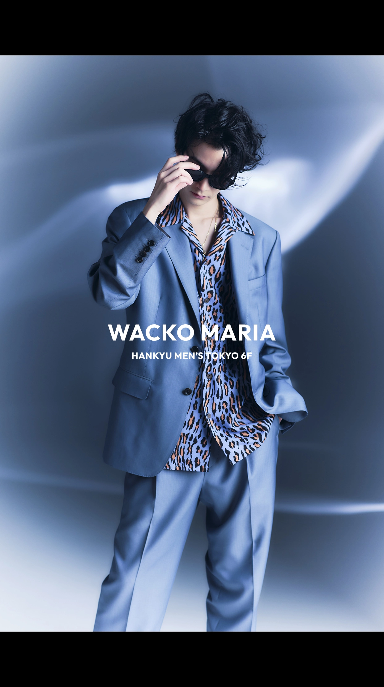 ゼニア社の生地を使用したヘリンボーンのセットアップはなめらかな肌触りが特徴。ブランドオリジナルのレオパード柄のシャツはブルーを基調に。さらに<金子眼鏡>とのコラボレーションによるアイウェアも独特のブルーのフレームカラーで。ワントーンのスタイリングが放つのは静寂なエレガンス。