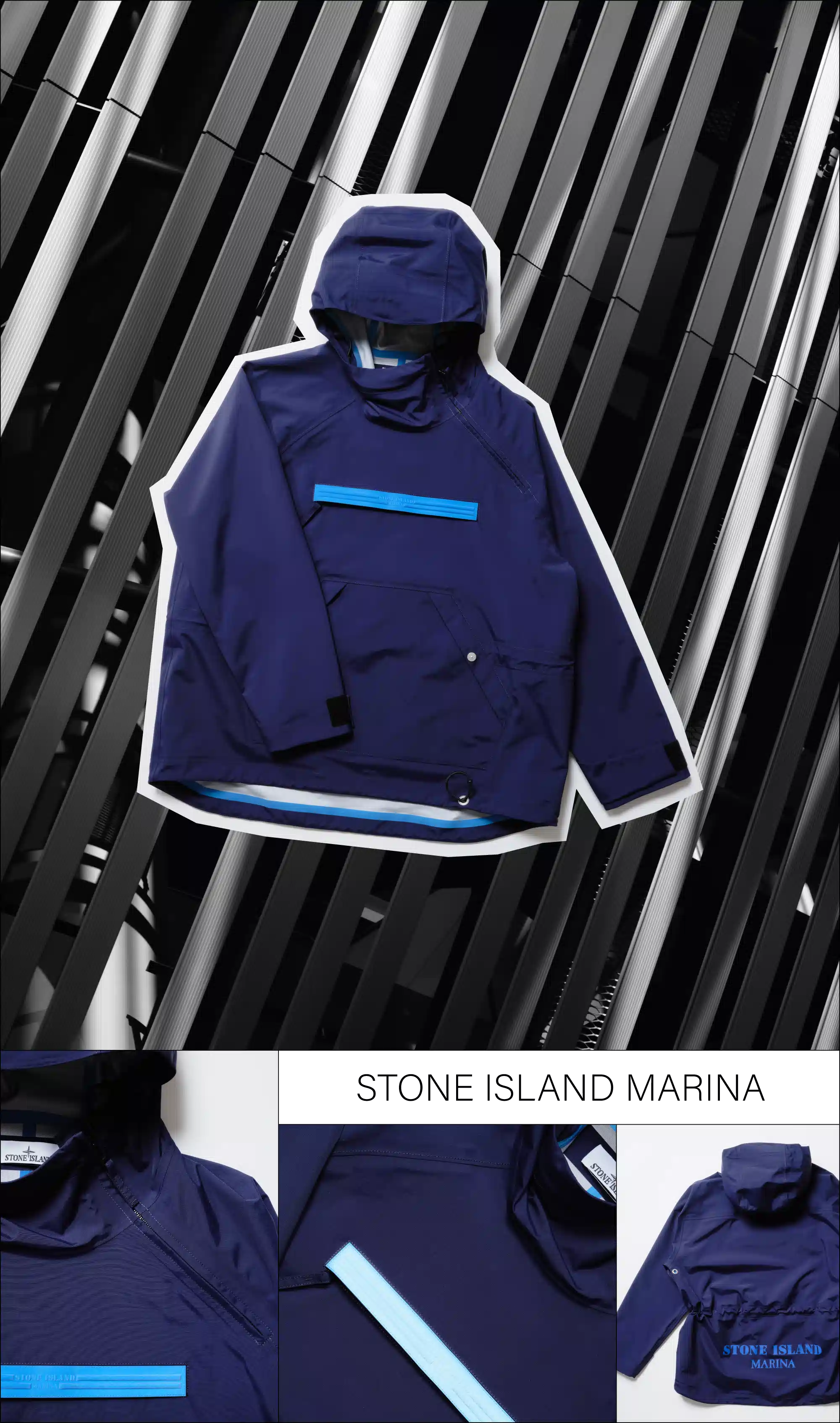 創始者マッシモ・オスティが愛した海をテーマに、鮮やかなカラーリングが印象的なカプセルコレクション。3層構造の防水・透湿素材を使用し、軽量で柔軟性と耐久性を兼ね備えた設計は、雨をはじきながら蒸れを抑える快適な着心地を実現する。首元の斜めジップや裾のドローコードが機能性を高め、背面のロゴプリントがスポーティなアクセントを添える。アーカイブの要素を現代的に再構築した一着。