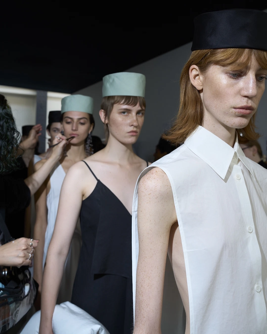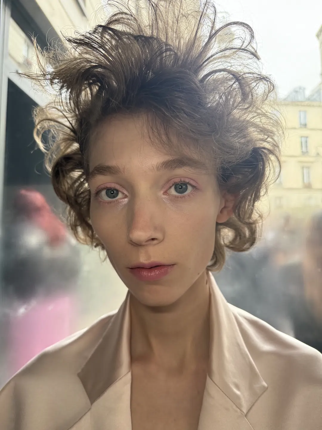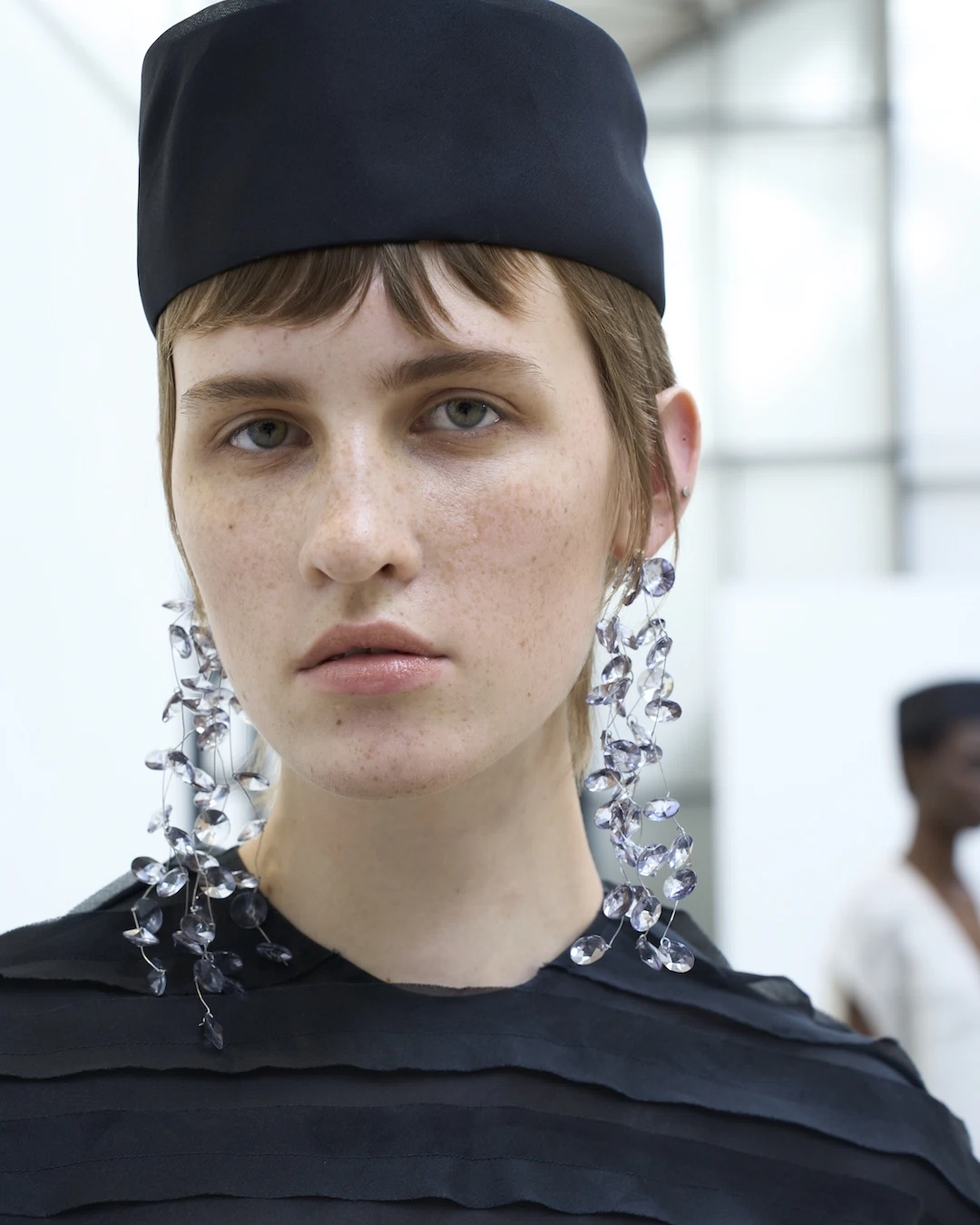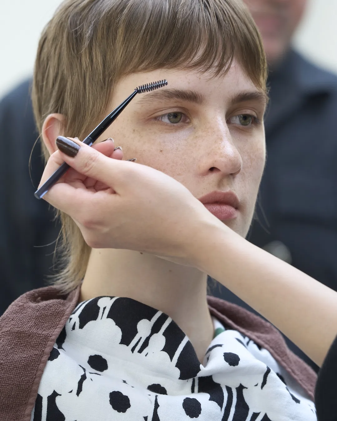 「今シーズンのコレクションには、“格式とリラックス”という二面性がありました。そのムードをヘアメイクでも表現するために、ボーイッシュな要素にほんの少しフェミニンな柔らかさを重ねています。」