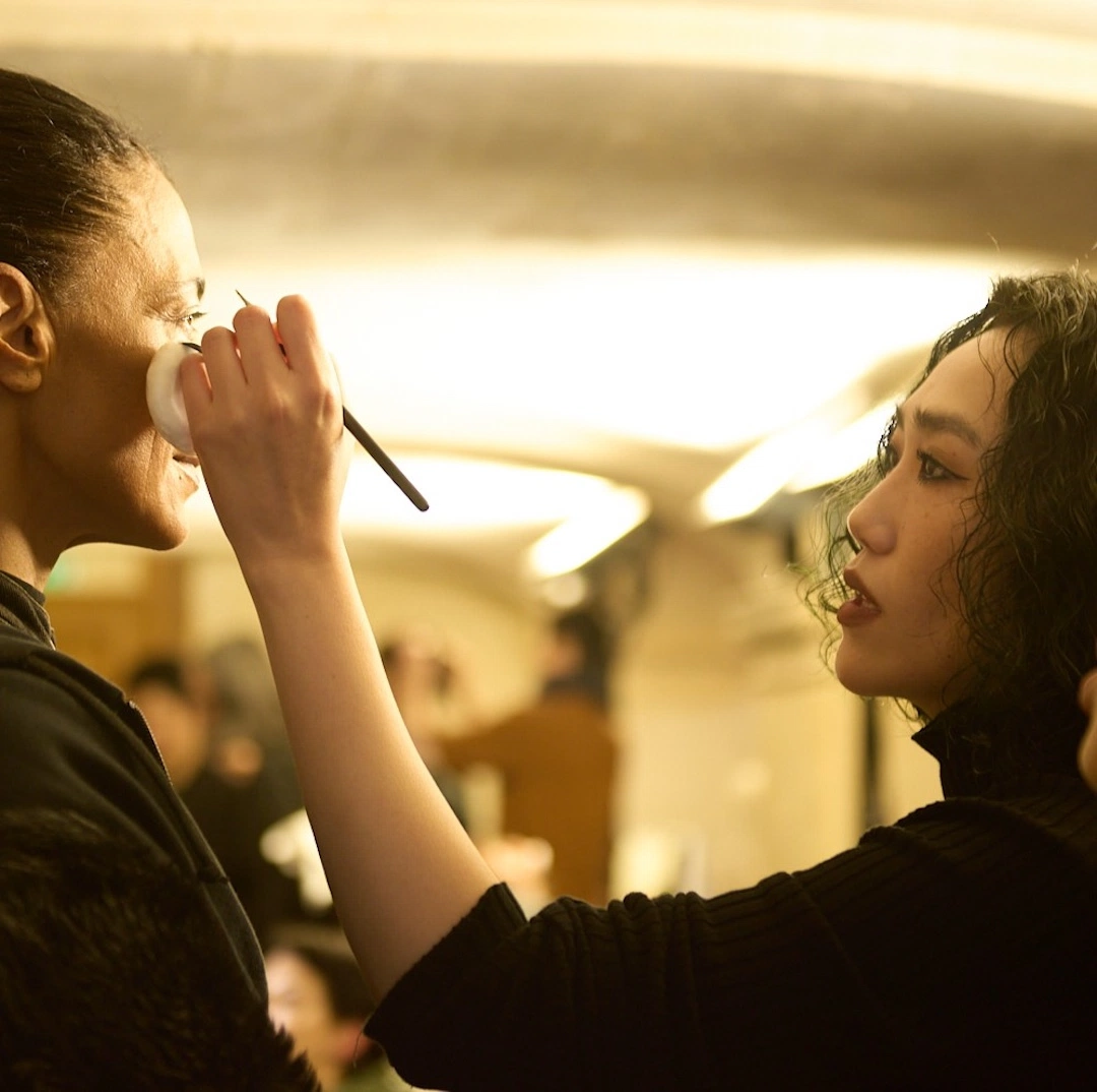 「<JennyFax>のコレクションは毎シーズン、どこか奇妙でユーモラスで、でも芯にあるのは“少女”や“日常”といったとても人間らしい感情だと感じています。今シーズンは、“普通”と“ファンタジー”が交差するような世界観が印象的でした。メイクアップでは、一人ひとりの個性が浮かび上がるよう意識しています。」