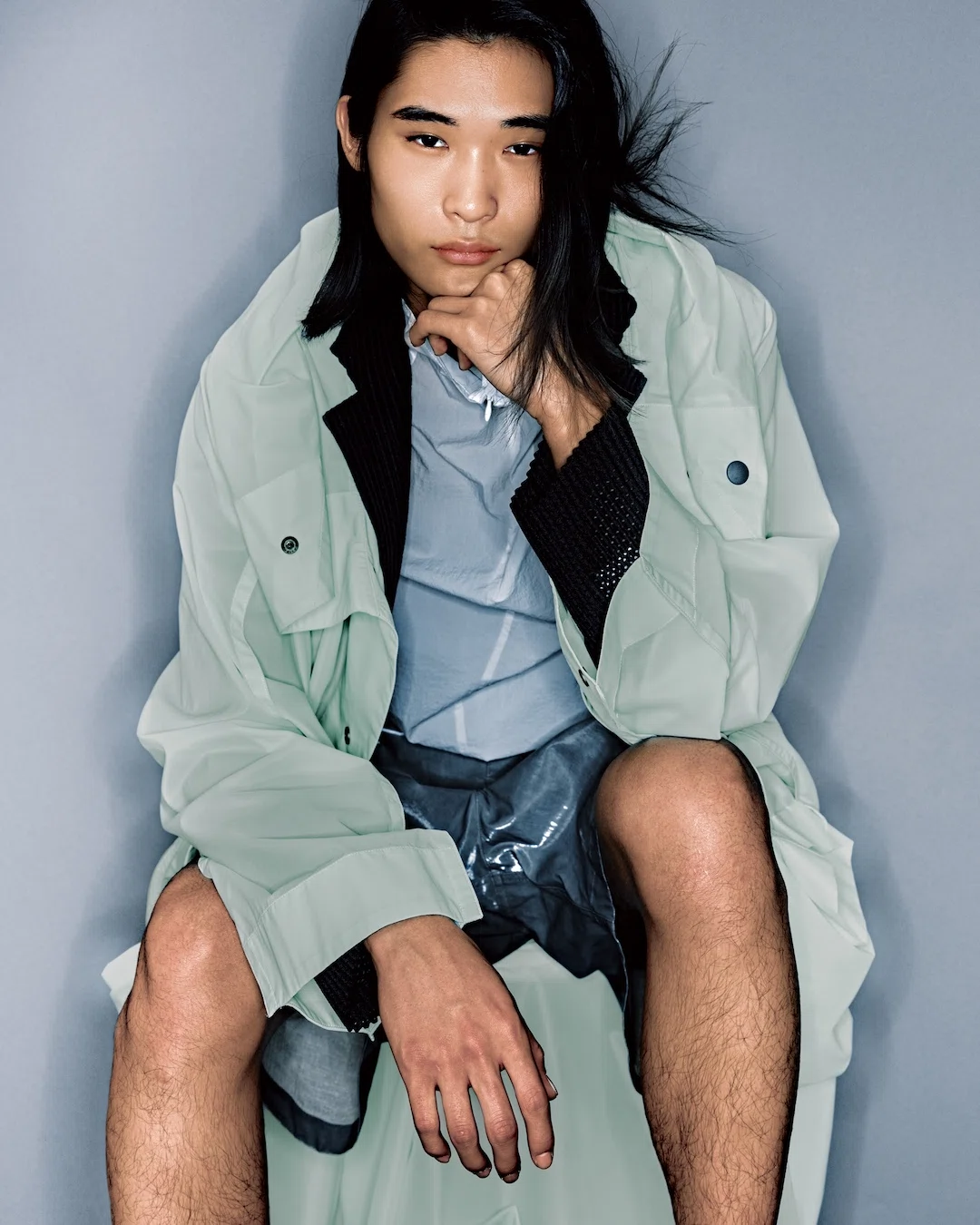 Coat ¥93,500、Jacket ¥58,300、Sandals ¥47,300(HOMME PLISSÉ ISSEY MIYAKE|ISSEY MIYAKE INC. 03-5454-1705)