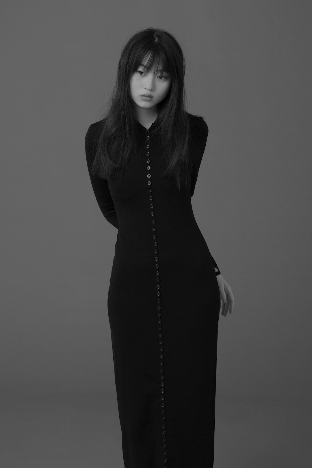 全身ブラックに潜むのは、語らないことで浮かび上がる意志。