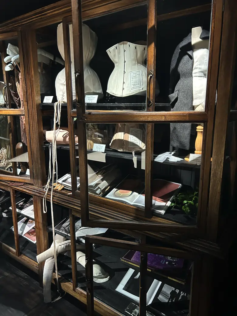 インスピレーションウォールの奥に進むと、そこには15世紀から18世紀にかけてヨーロッパで作られていた、様々な珍品の博物陳列室『キャビネット・オブ・キュリオシティ(好奇心のキャブネット:驚異の部屋)』を再現したスペースがあった。今回のコレクションで“コルセット”がどれだけ重要な鍵を握っているのかは、このスペースの展示が示していたように思える。