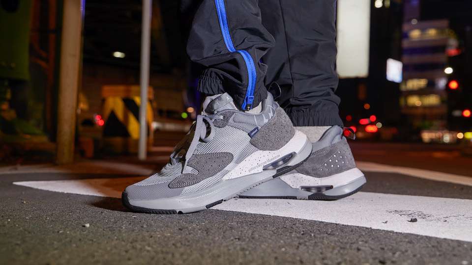 このシューズは、シンプルでタウンユースでの履きやすさを意識しつつ、モダンなアレンジを加えたジムウェアのようなアパレルの雰囲気にも馴染む仕上がりとなっている。