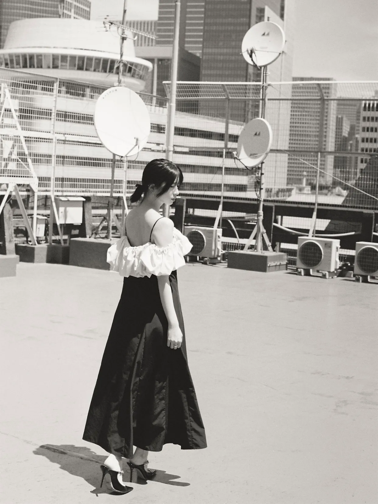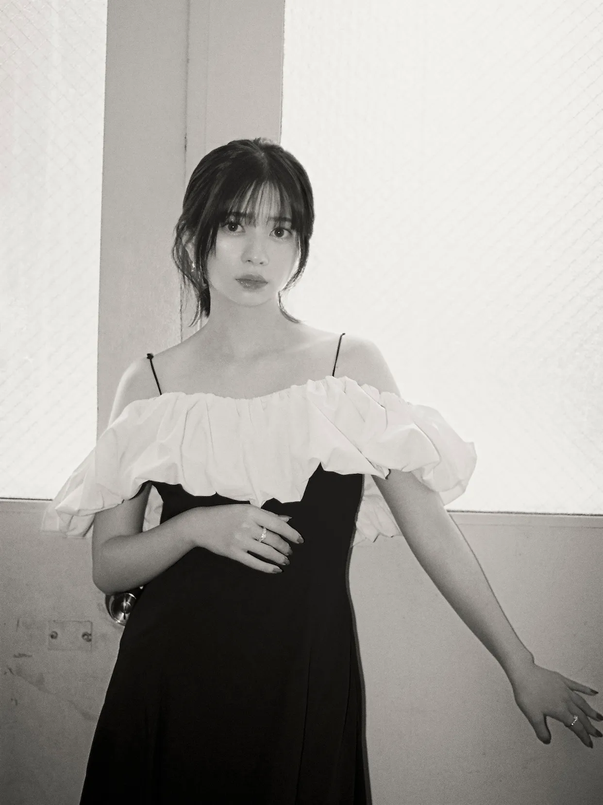 dress ¥25,300 / eimy istoire (DOT ONE), ring on right middle finger ¥28,000・ring on left index finger ¥33,000 / SOLO, Other stylist’s own