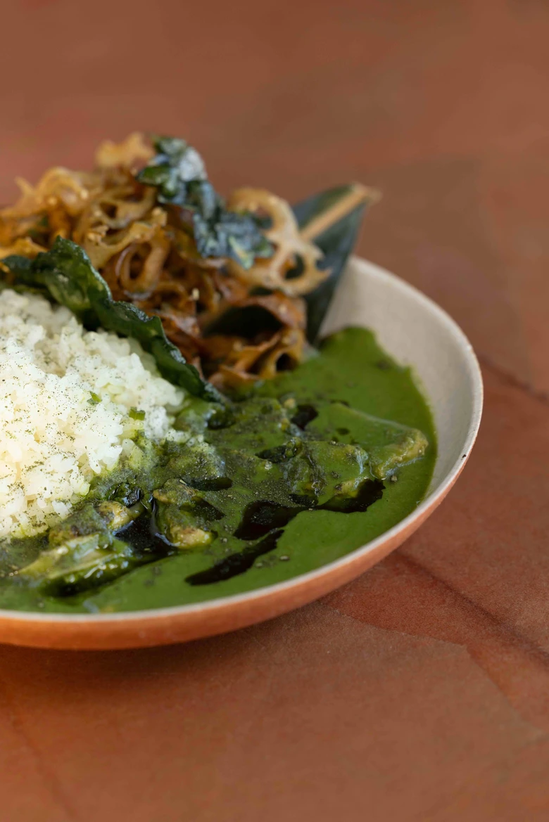 野草や薬草は、健康志向の文脈に閉じ込められるのではなく、満足感のある料理として再構築される。理念を語るのではなく、味覚として提示する点が特徴だ。