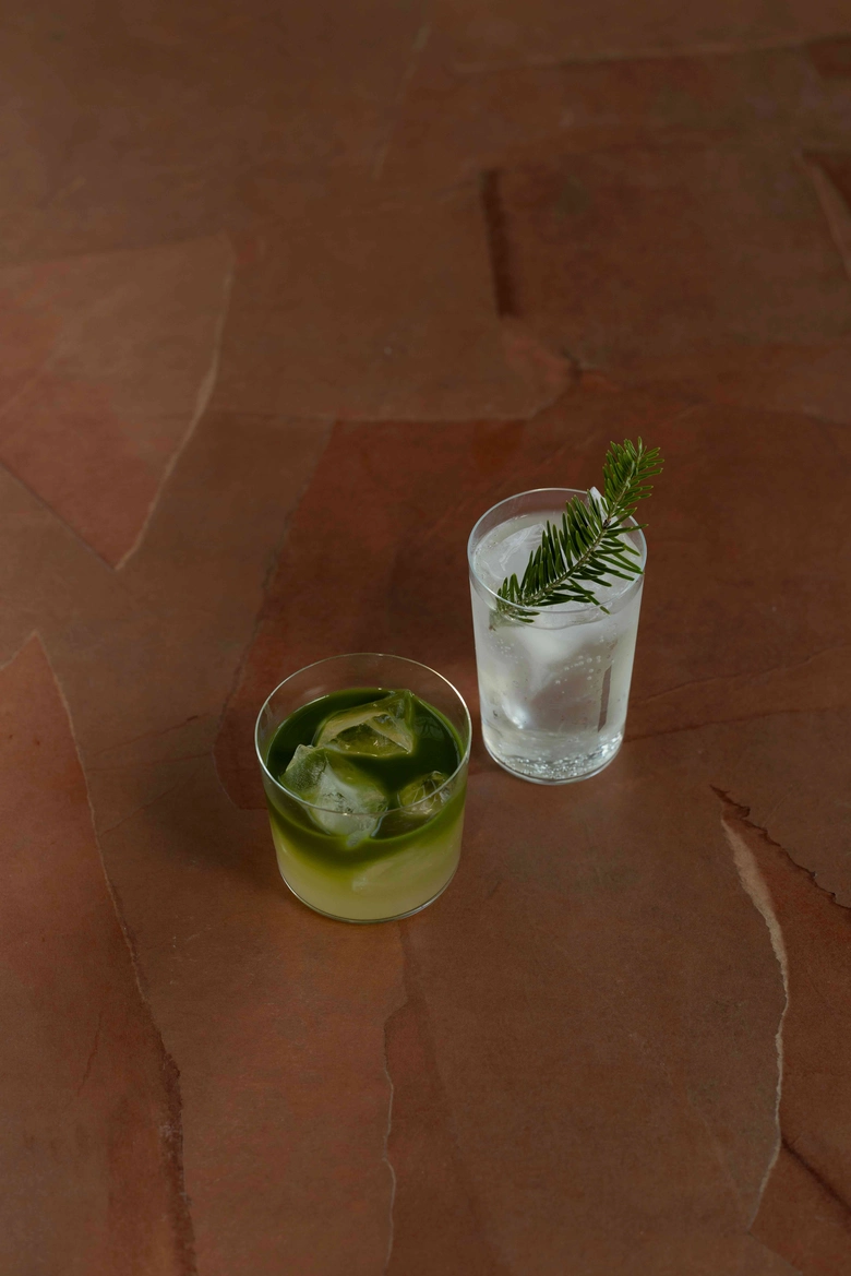 モミ香るノンアルコールジントニック ¥900、よもぎフロートココナッツミルクパンチ ¥1,100