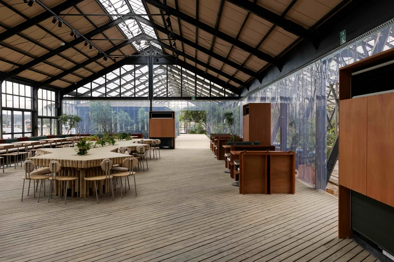 温室内にひらかれる食堂は、有用植物の思想を最も具体的に体験できる場だ。