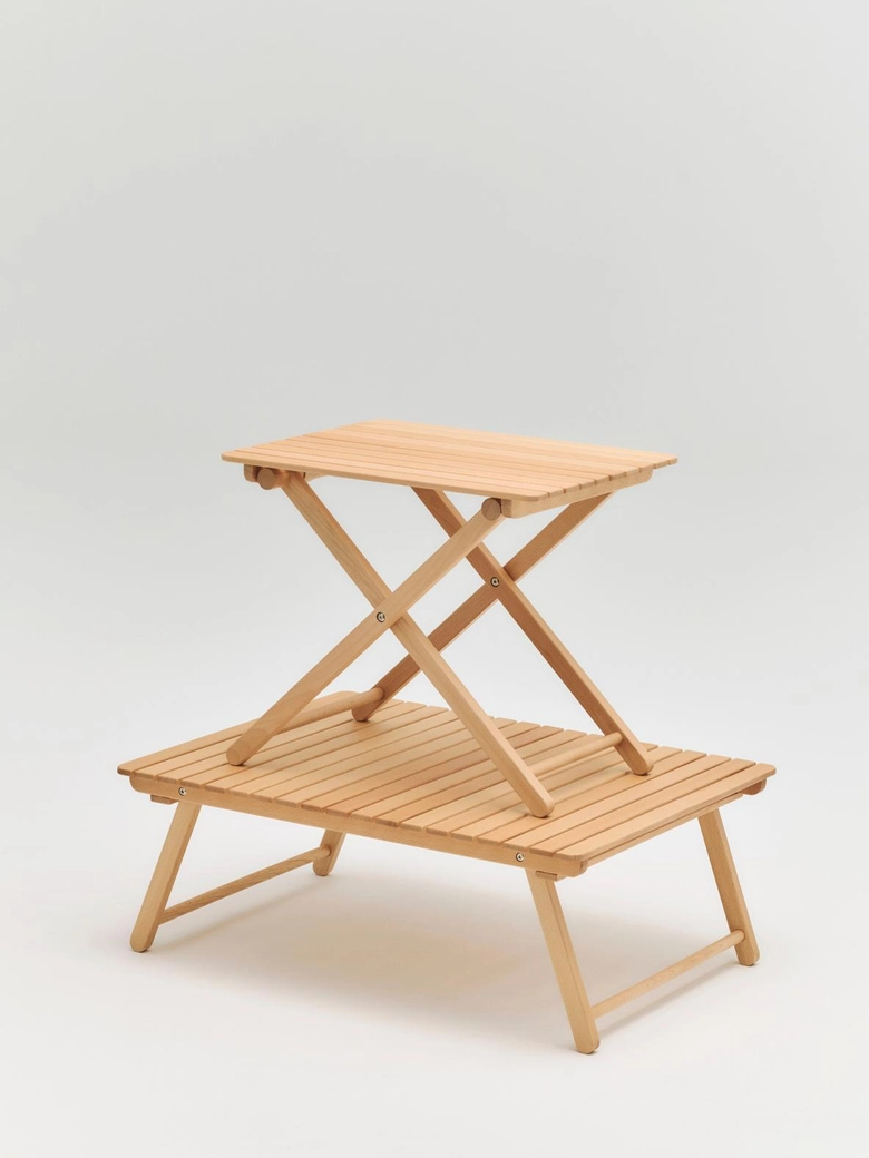 折りたたみ家具は、持ち出しやすく、しまいやすいことで、屋外で過ごすための居場所を気軽につくる。