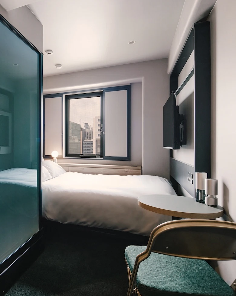 今回はオープン前の宿泊体験を兼ねたパーティーに参加しました。自動チェックインは非常にスムーズで、スタッフの方々の心地よい距離感もあり、幸先の良いスタート。今回宿泊したのは、最もスタンダードなダブルルーム。部屋全体が落ち着いたトーンでまとめられていて、無駄な装飾を排したミニマルなデザインが心地良い静けさを生み出していました。