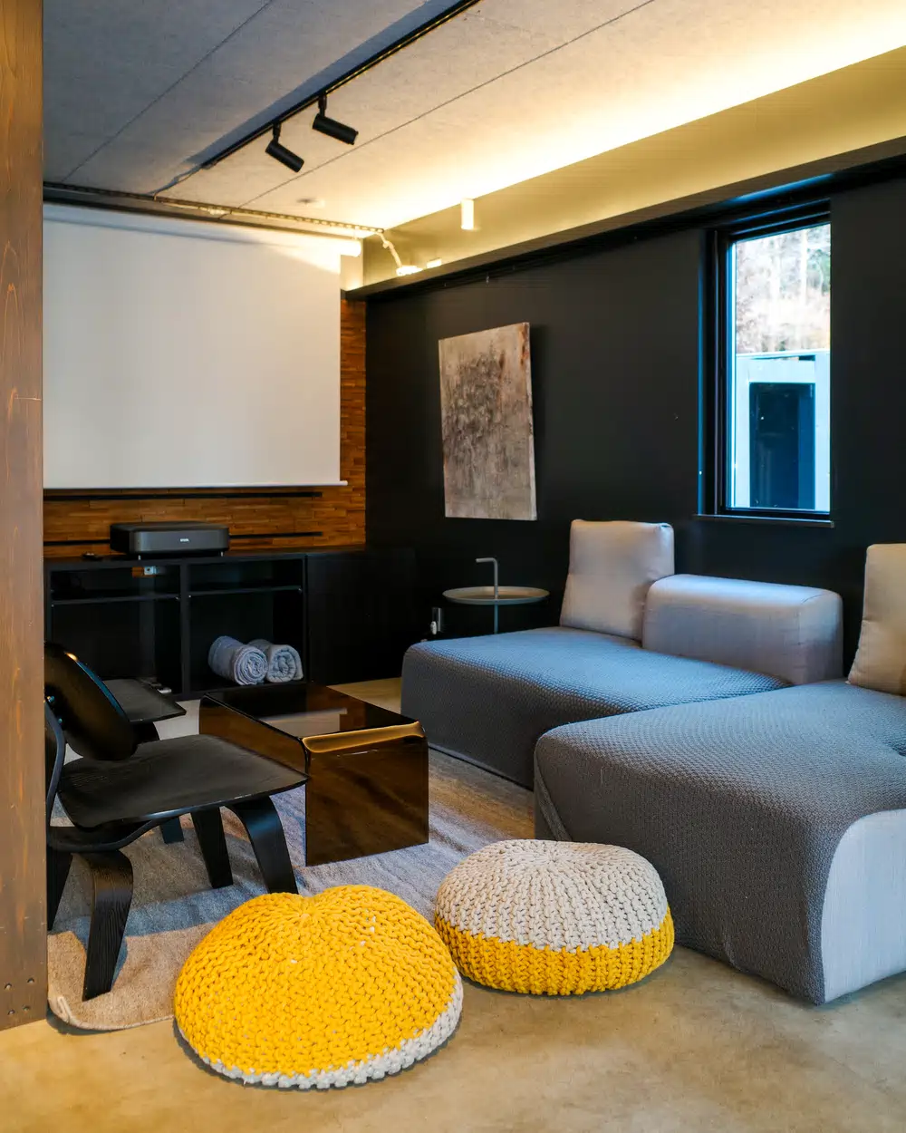 建物は、周囲の森や空の色に溶け込むよう設計されています。直線的でミニマルな佇まいでありながら、冷たさはなく、木材やファブリックの質感が空間にやわらかな温度を与えている印象。大きな窓から差し込む自然光は、時間帯によって表情を変え、朝・昼・夕方・夜と、それぞれ異なる「滞在のリズム」を生み出してくれます。ソファに身を沈め、ただ外の景色を眺めているだけで、思考がゆっくりと静まっていくのを感じられました。