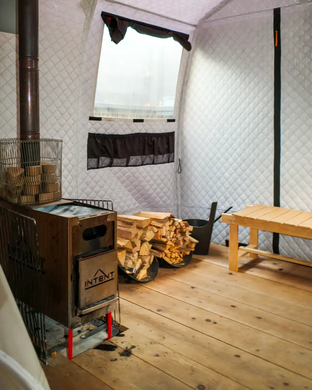 「hotel norm.fuji」に併設される宿泊者専用のアウトドアサウナは、薪を焚いて温める本格仕様。じっくりと身体に熱を入れたあとは、森の空気を感じながら外気浴へ。水風呂も完備され、人工的な音のない環境だからこそ、鼓動や呼吸がはっきりと感じられ、身体が本来のリズムへと戻っていく感覚。サウナの中で、最近感じていることやこれからのことを友人たちと語り合う時間も、この滞在ならではの醍醐味でした。
