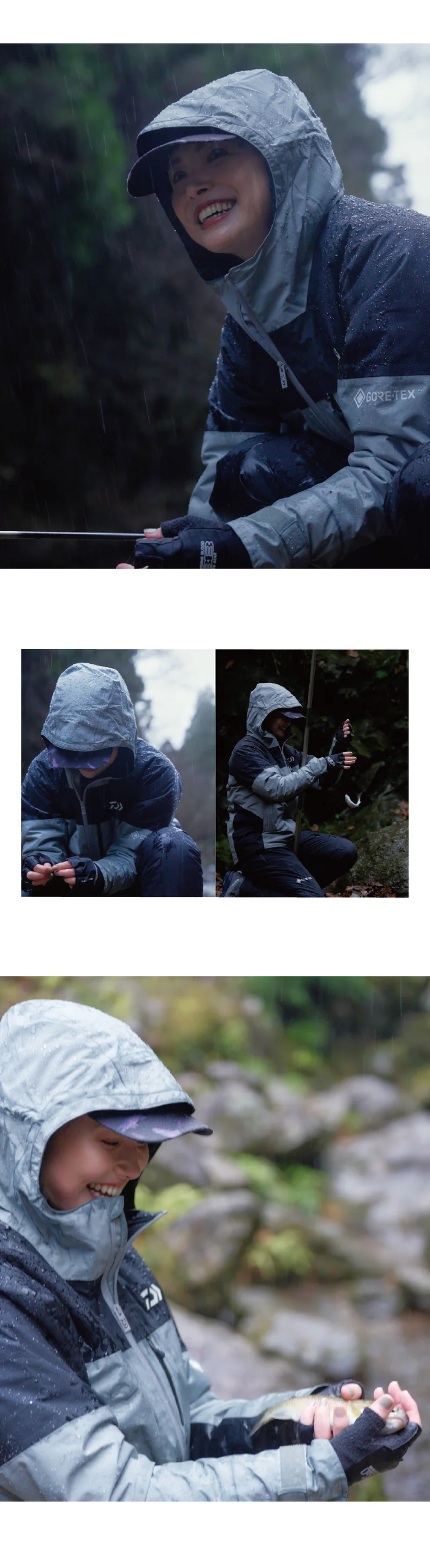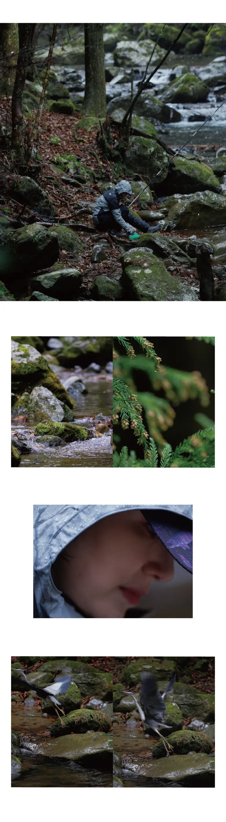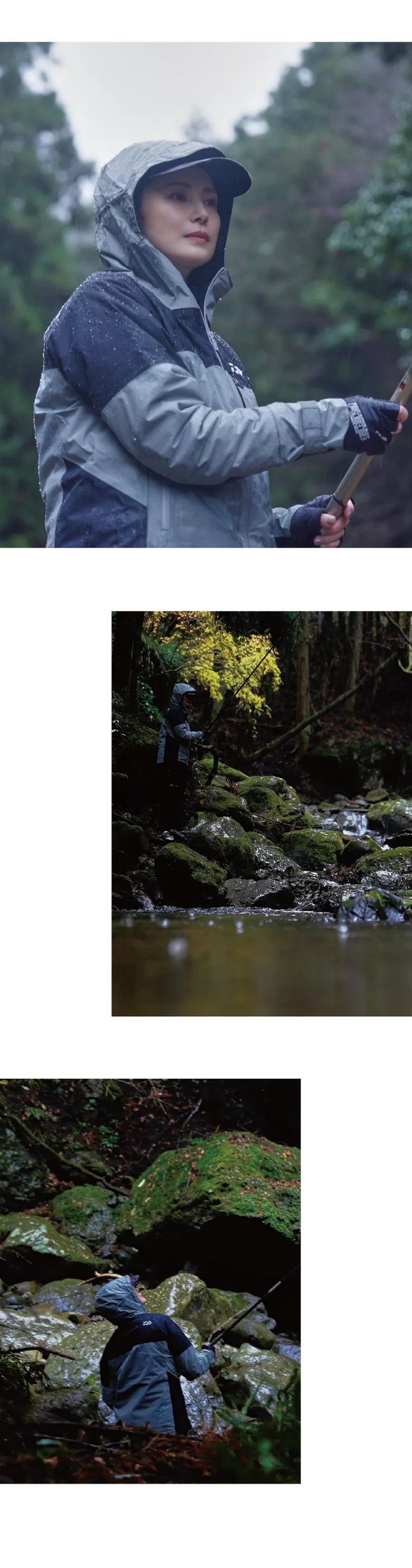 美村:クリスマスイヴ※にこんな大雨の中で釣りは初めてです(笑)。実はそれ以外にも色々ありまして、ちょっとお話ししてよろしいでしょうか。今日のコンディションは天候以前に、川幅や枝の方が脅威でした。ご依頼いただいた時から「6mの愛竿持っていきます」とお伝えしていたのですが、撮影場所に着いたら完全に短いロッド向きの川で、内心「ど、どうしよう⋯」と冷や汗状態だったんですよ(笑)。でもこの寒い雨のなか、しかもイヴに集まって頑張ってくださっているスタッフさんたちに、絶対に美しい魚を捧げるぞと気合をいれまして⋯⋯。短時間でも9匹釣れてくれてホッとしました!魚たちと川の神様に感謝です。梅雨時の増水と共に海から川へ遡上してくる、サツキマス狙いの釣りをやってきた経験も活きたかもしれません。渓流釣りは禁漁期間があるので、12月の釣りはとても楽しい体験でした。