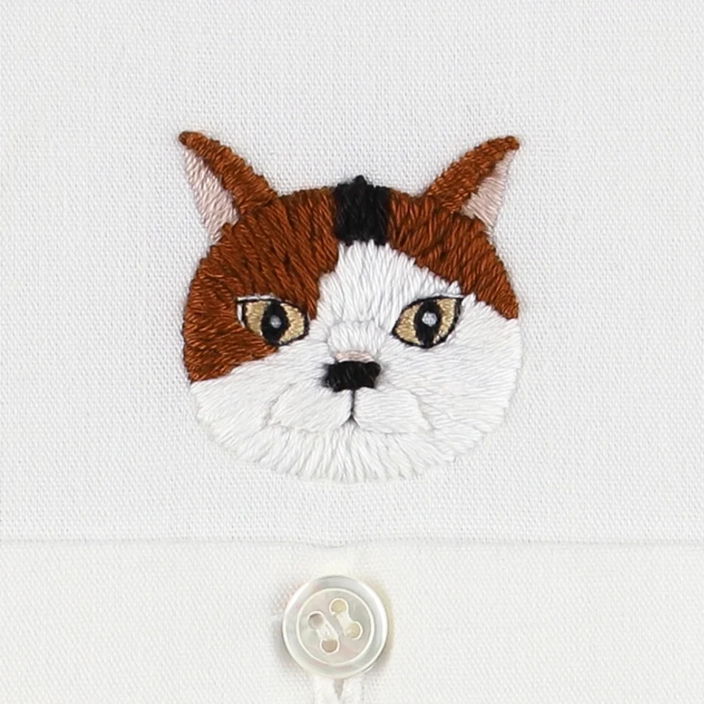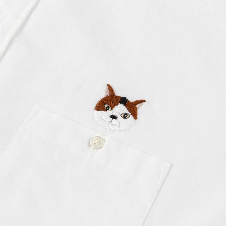 ボックスシルエットのシャンブレーシャツの胸元にワンポイントの刺繍は愛嬌が漂う。一つ一つ丁寧に仕上げられるハンドメイドの刺繍は決して同じデザインはなく、同じ猫はいないと同様、新しい猫を生みだしている。軽量で耐久性と通気性に優れた5オンスの生地は、シーズンを問わず着用できる。猫好きな方でも、そうでない方でも、今回のrojiと<is-ness>の特別な取り組みを通し、猫に夢中になってはいかがだろうか。