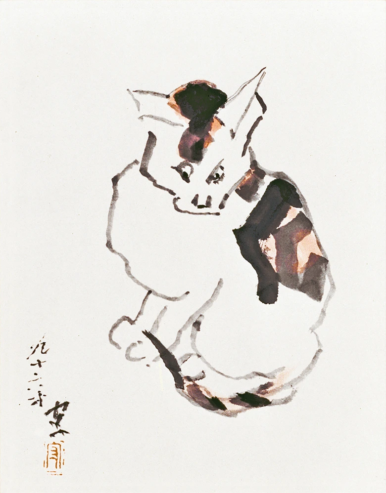 《猫》1975 年、紙本・墨画淡彩、熊谷守一つけち記念館蔵